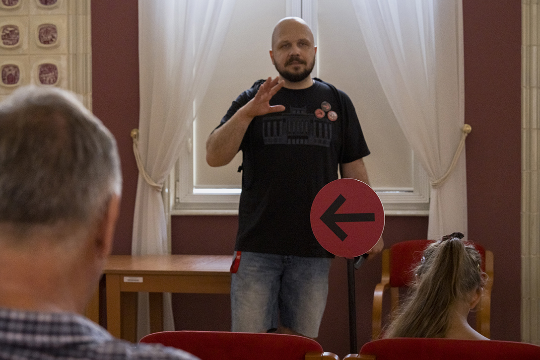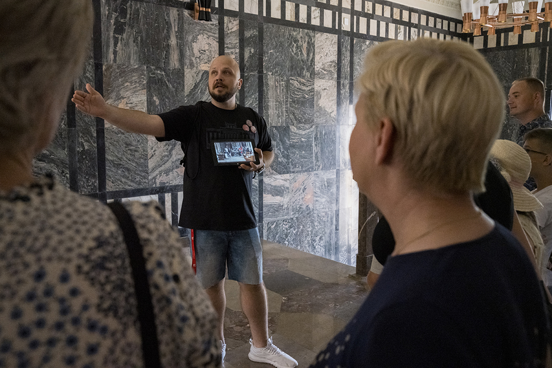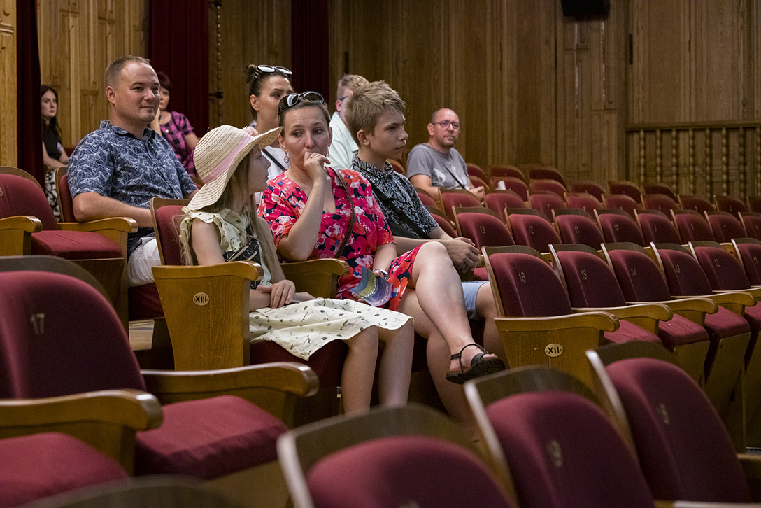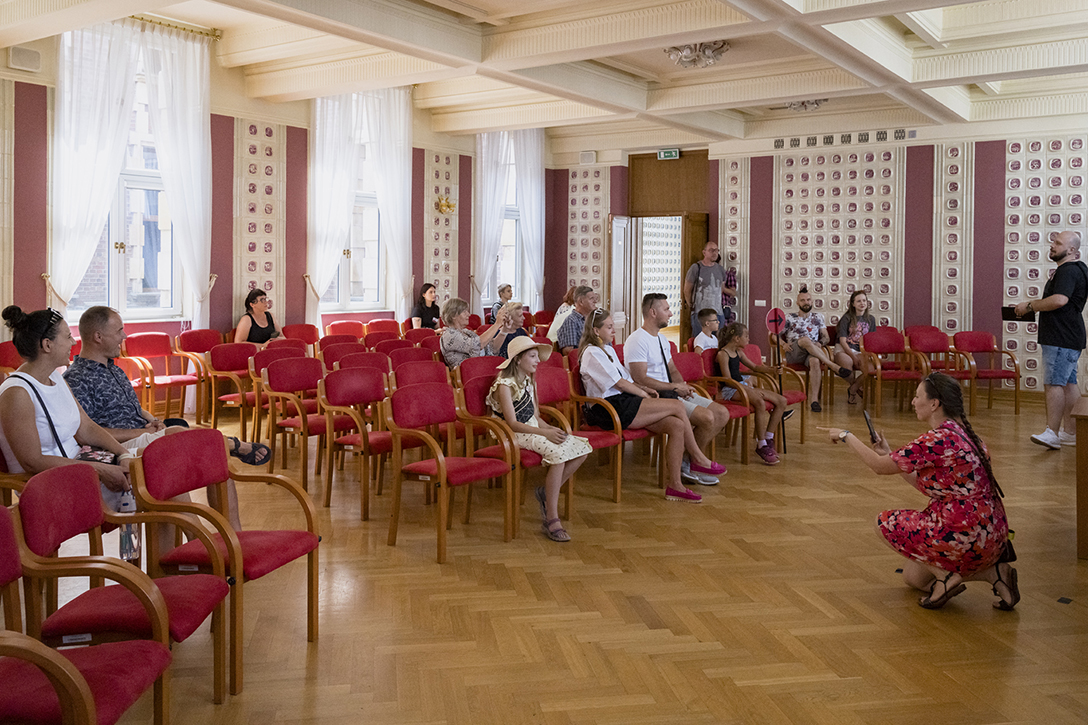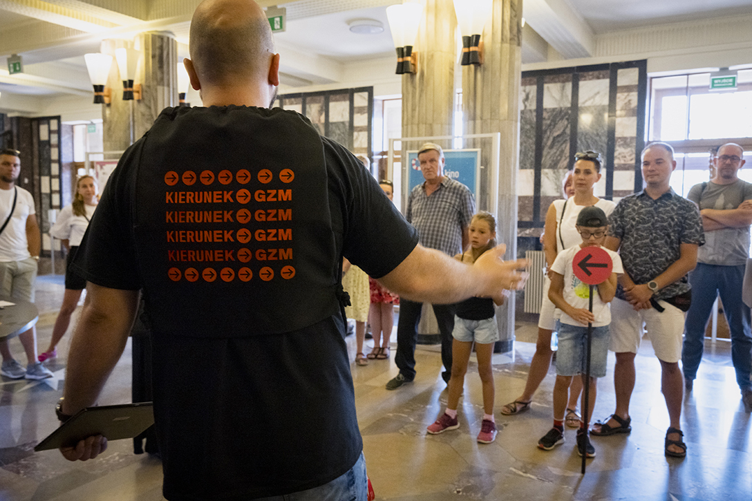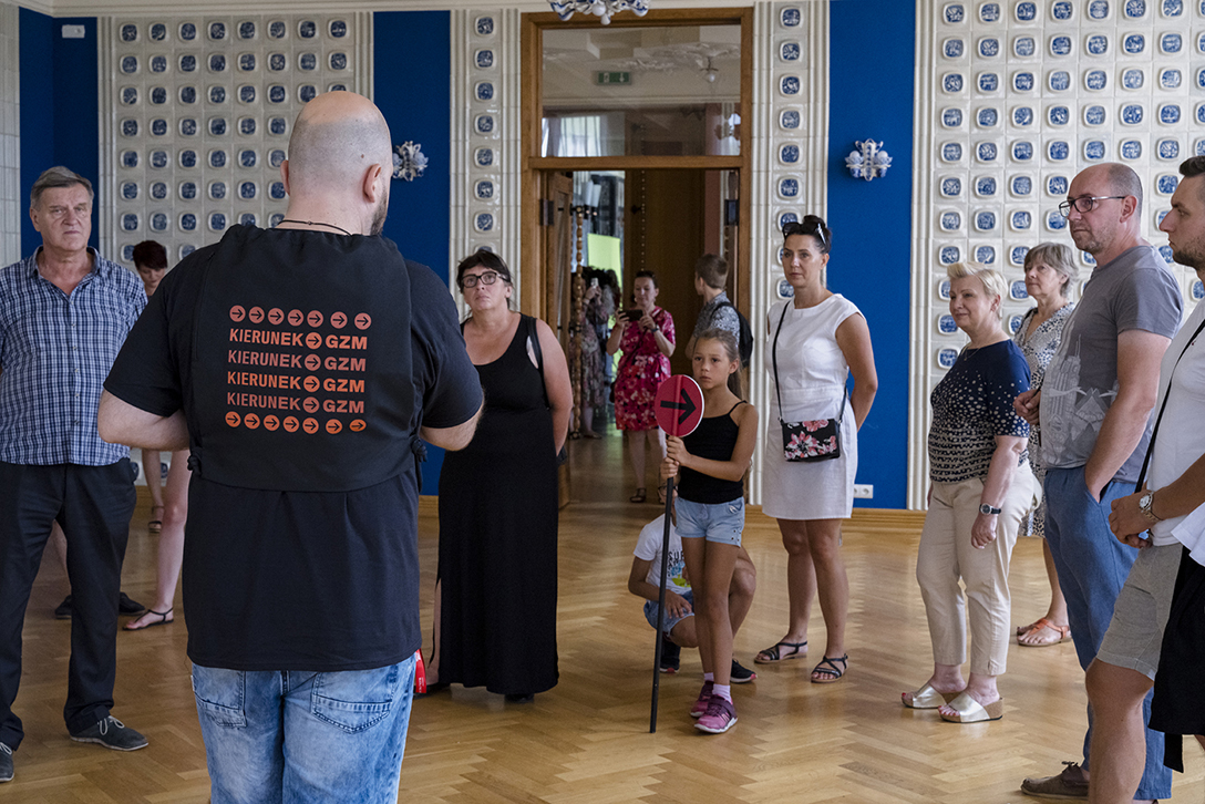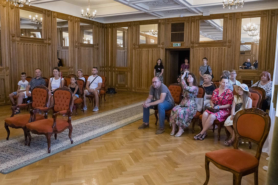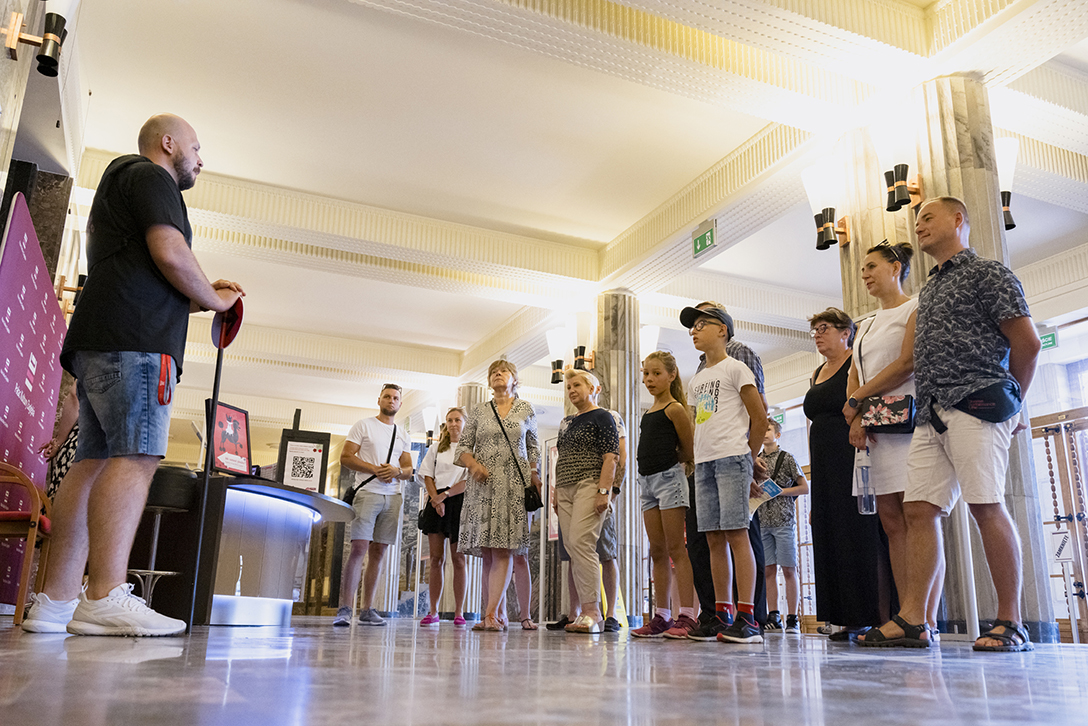 29.06.2024 r. – „Pałac, Kamera, Akcja!” – wycieczka po zabytkowych wnętrzach Pałacu Kultury Zagłębia śladami filmów w nim realizowanych. Fot.: M. Wesołowski