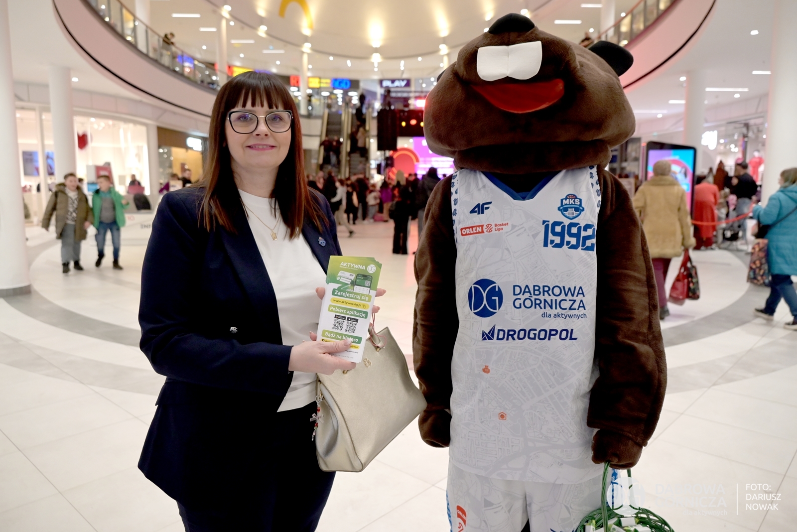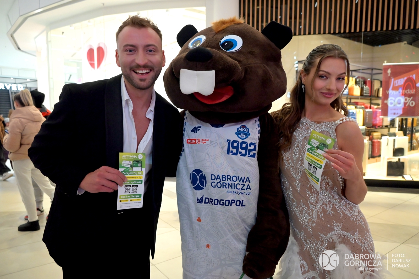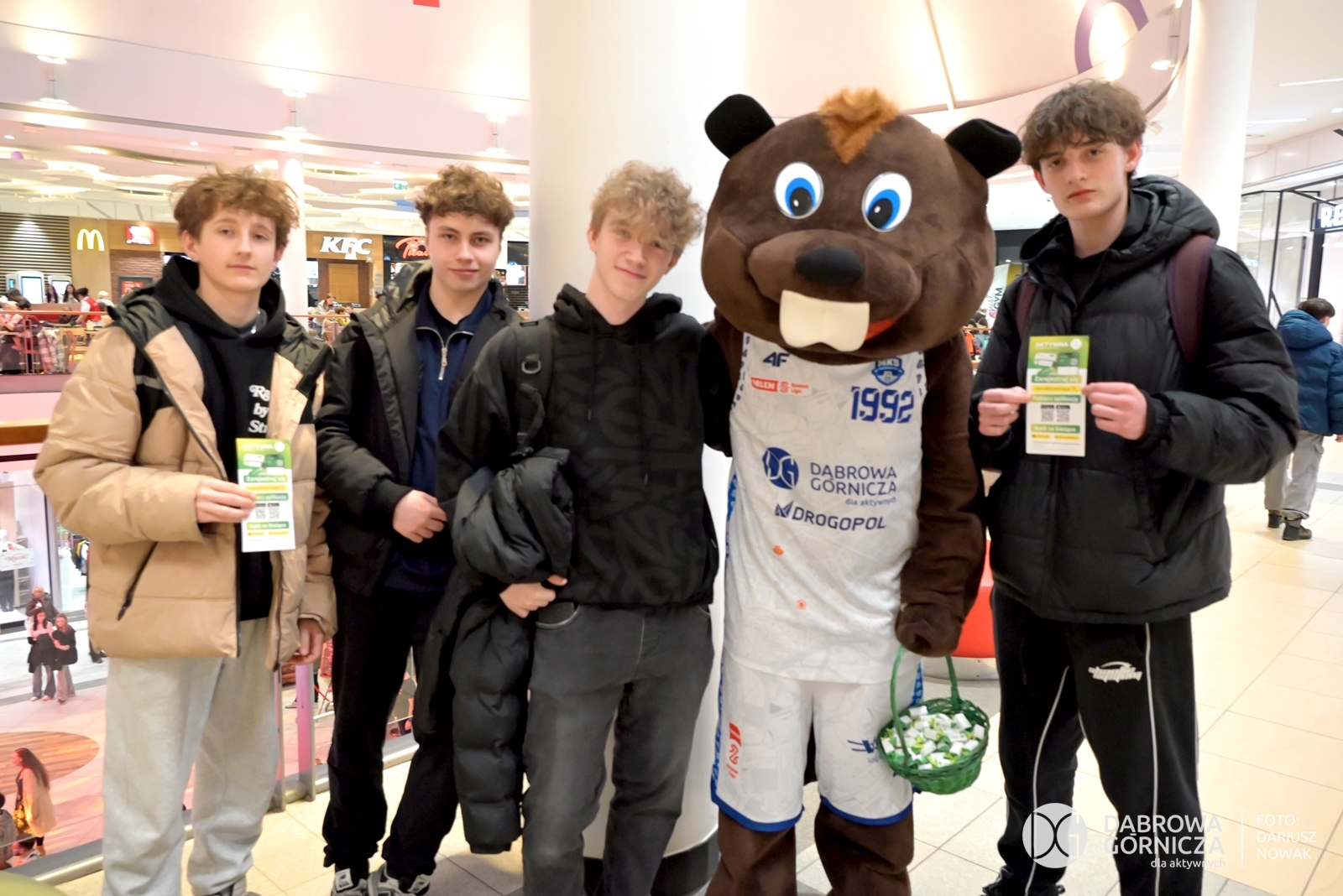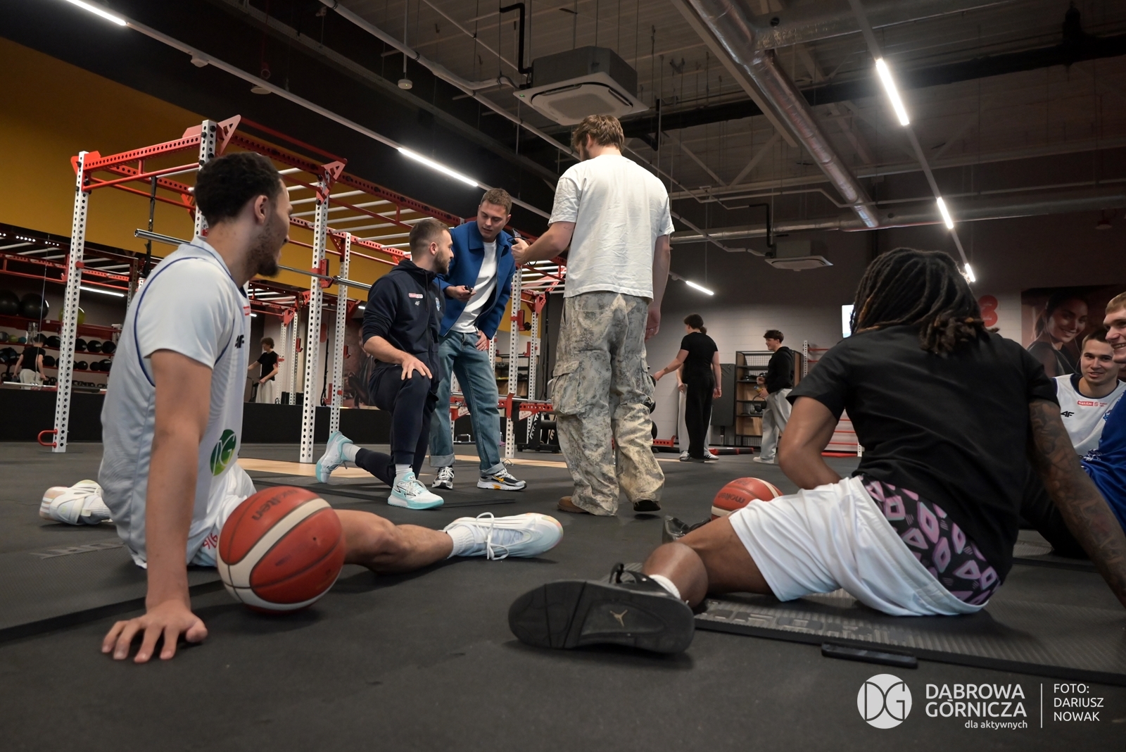 2026.02.06 DG – Centrum. CH POGORIA – Koszykarze MKS DG trenują w Just GYM oraz promują Aktywną DG. Gościnnie Adam Zdrójkowski z serialu „Rodzinka.pl”. FOTO: Dariusz Nowak (nddg)