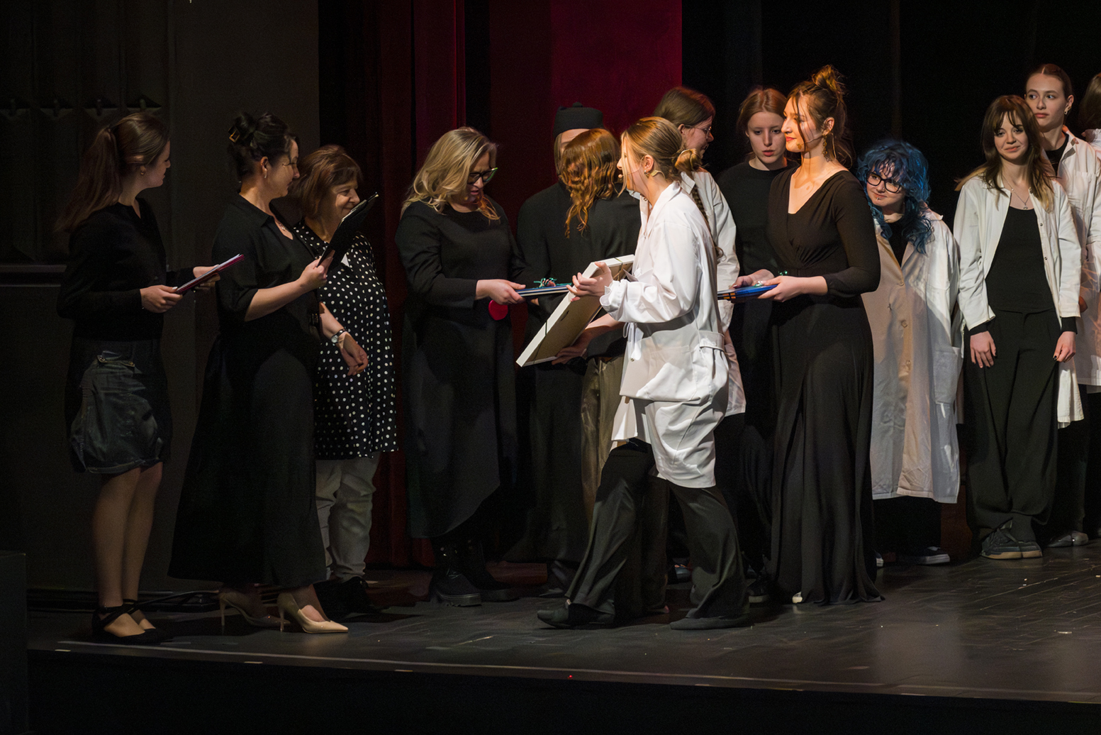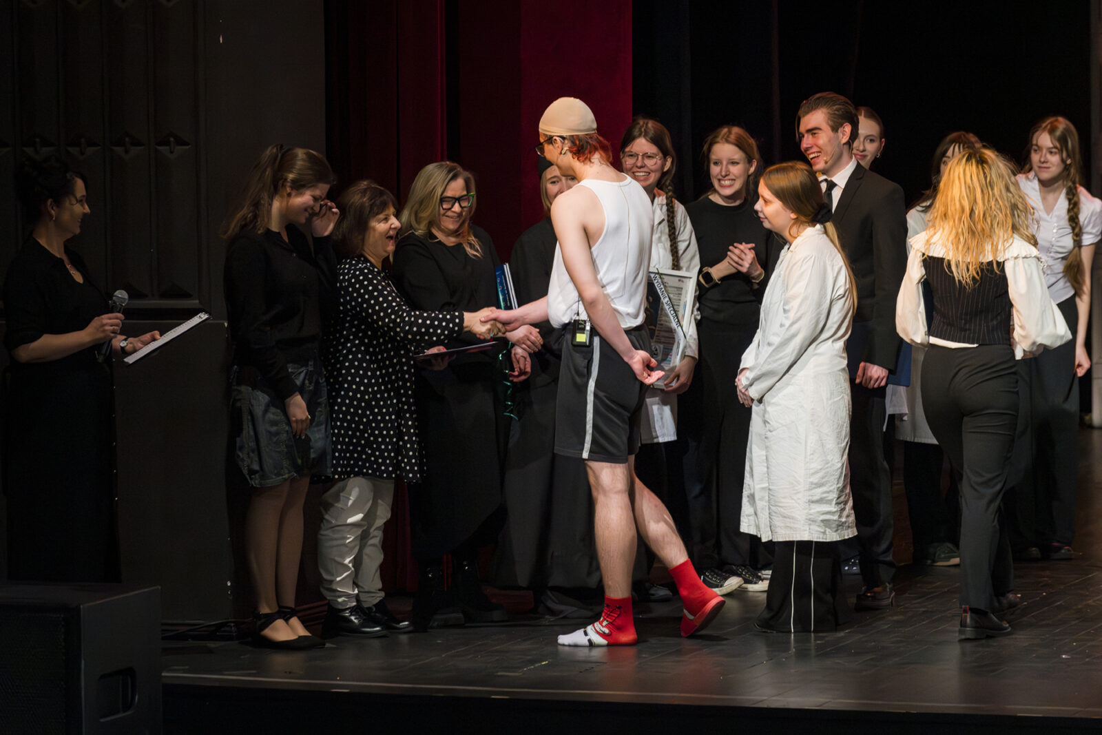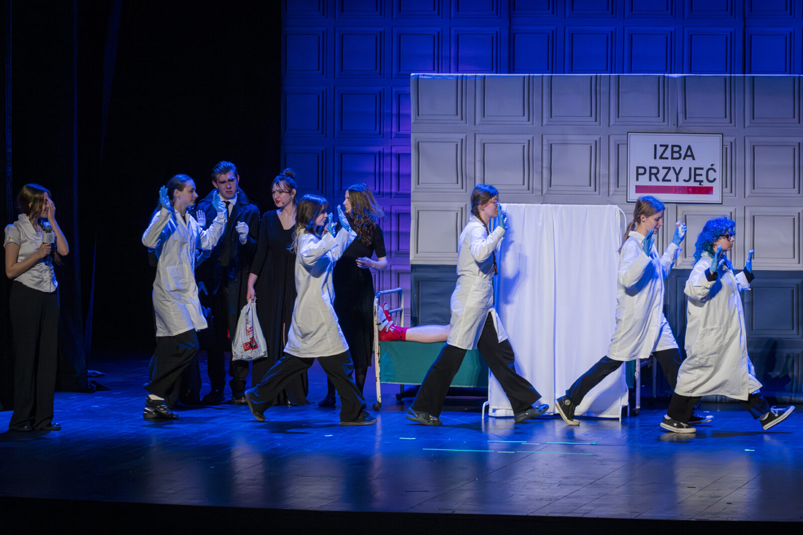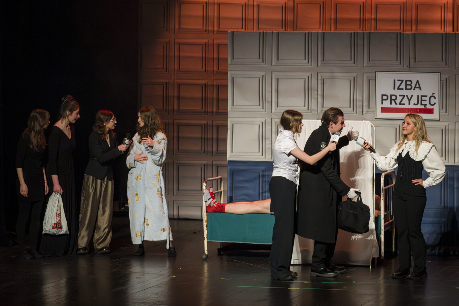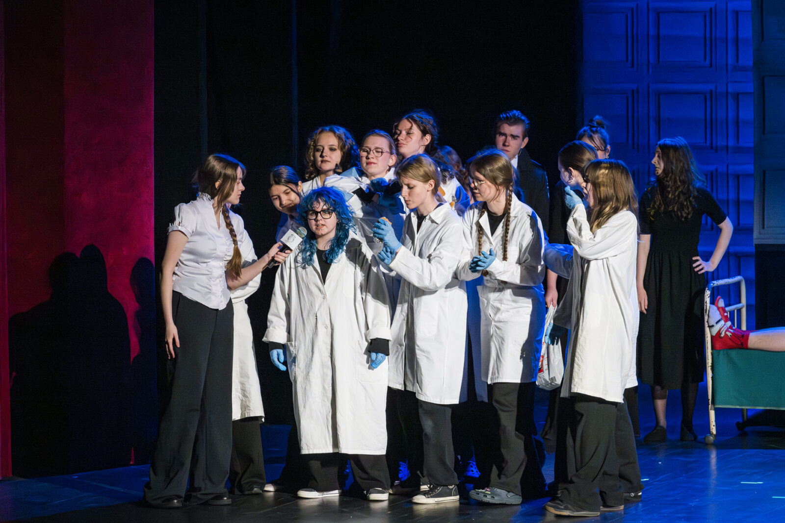 01.04.2026 r. – groteskowy humor i satyryczne zacięcie w czarnej komedii obnażającej małomiasteczkową mentalność w pogoni za sensacją. Szkolne Koło Teatralne „Adamantem” pod kierownictwem Ewy Pawik. Fot.: M. Wesołowski