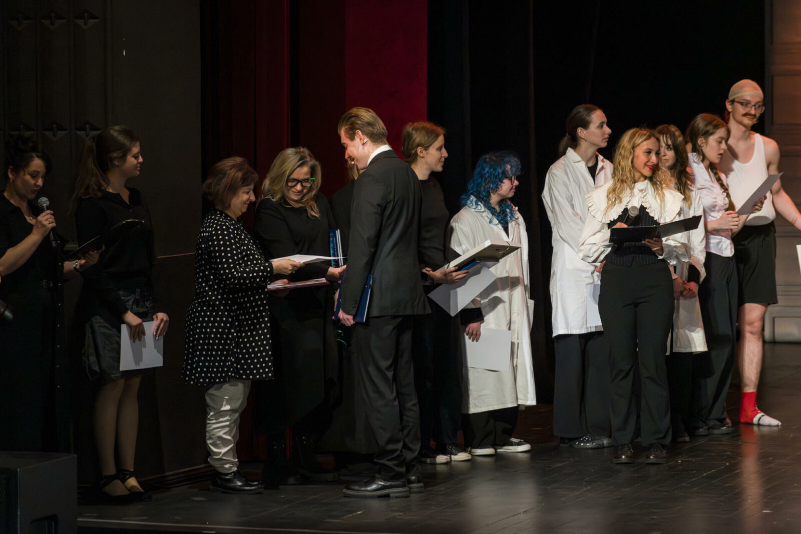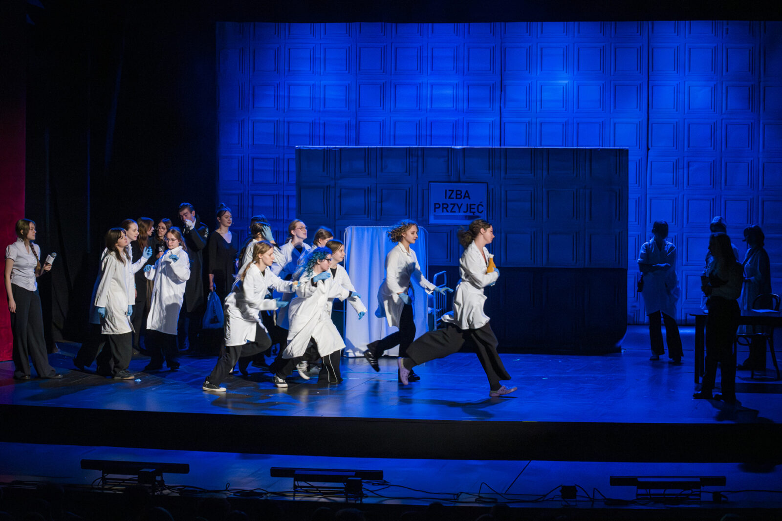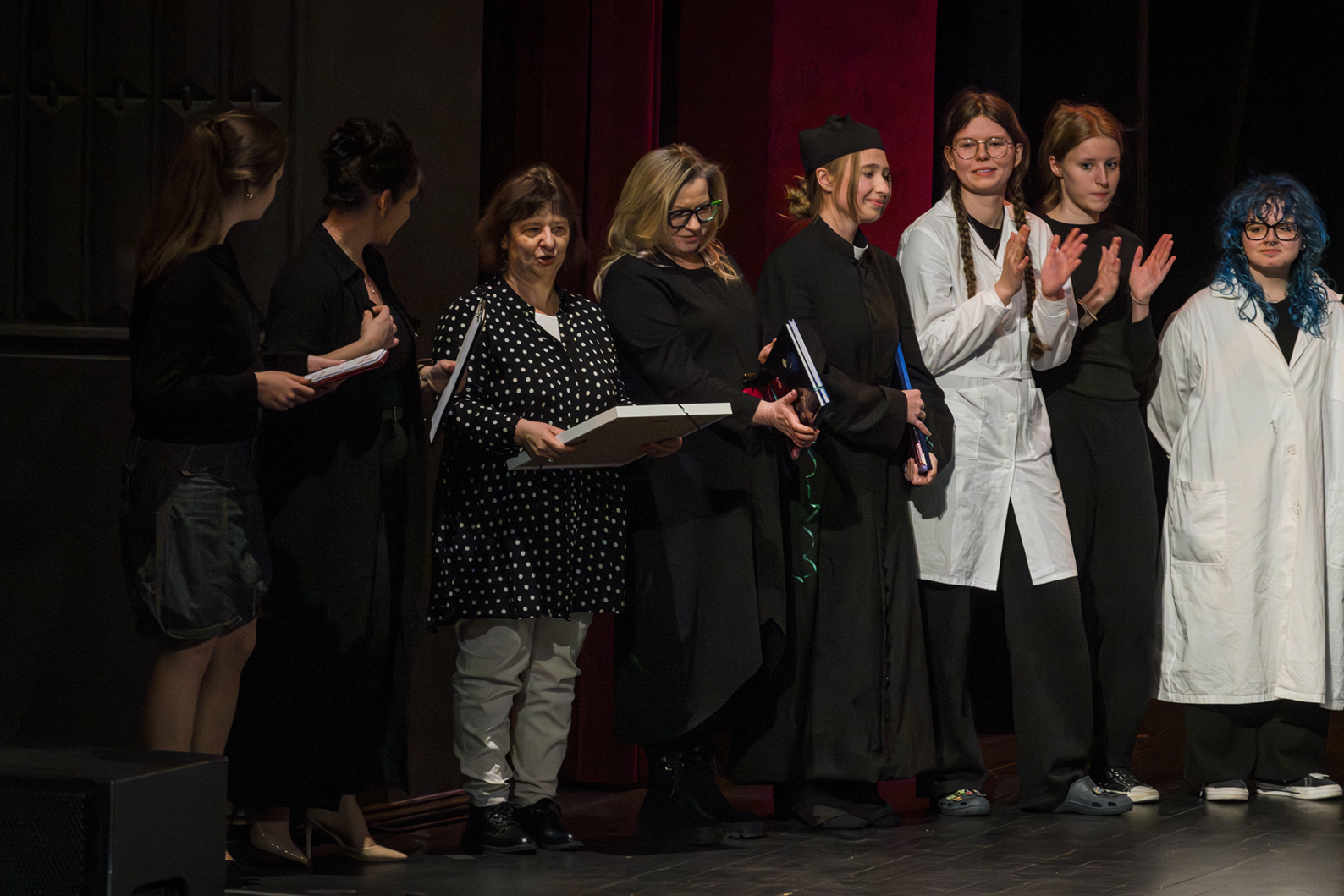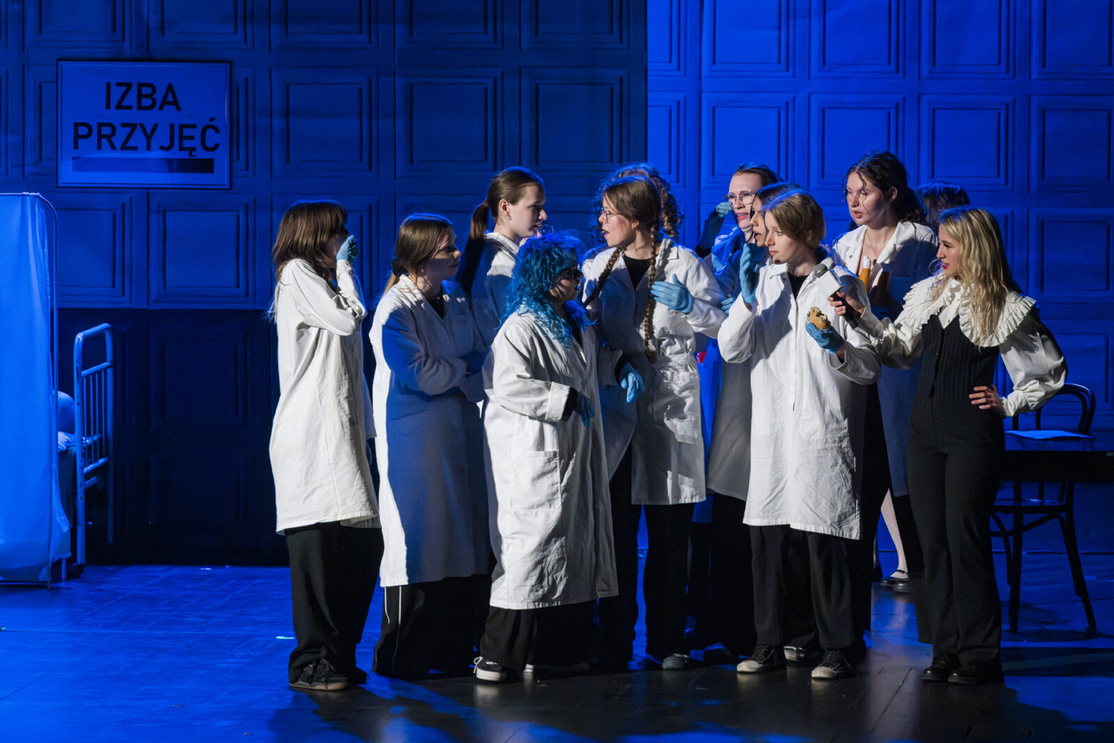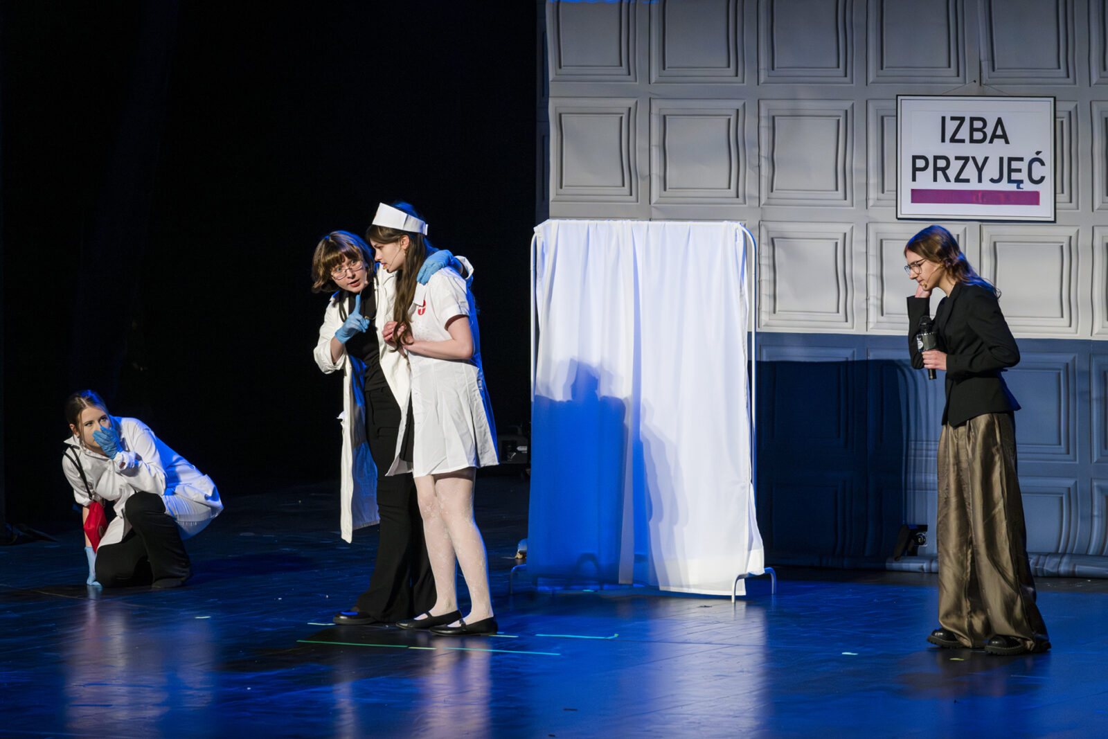 01.04.2026 r. – groteskowy humor i satyryczne zacięcie w czarnej komedii obnażającej małomiasteczkową mentalność w pogoni za sensacją. Szkolne Koło Teatralne „Adamantem” pod kierownictwem Ewy Pawik. Fot.: M. Wesołowski