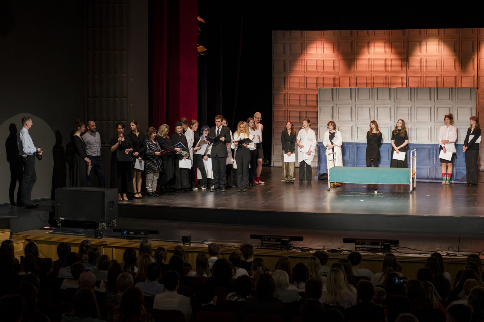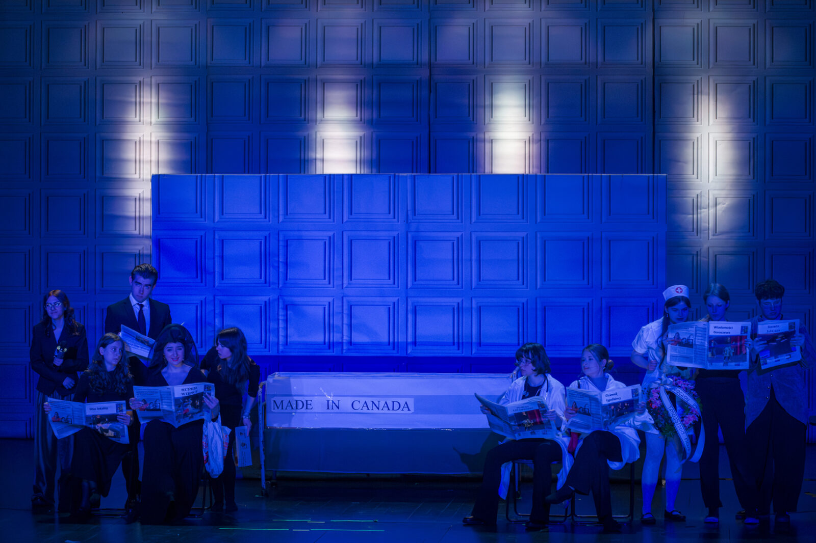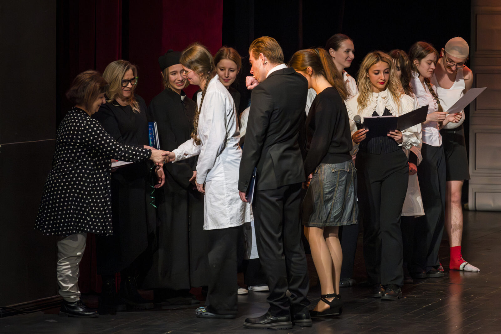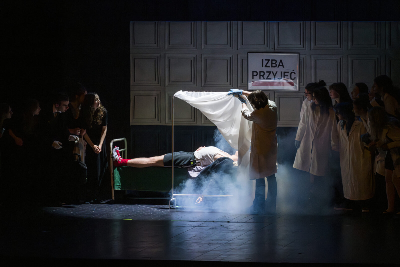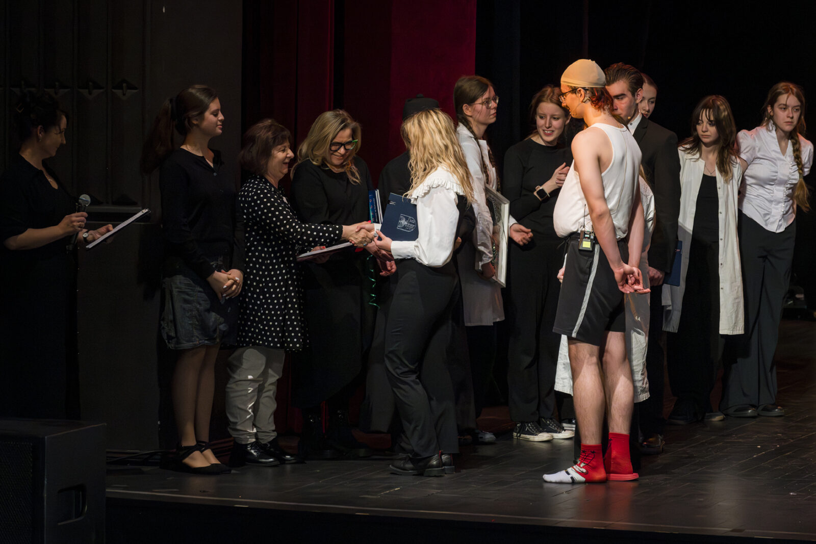 01.04.2026 r. – groteskowy humor i satyryczne zacięcie w czarnej komedii obnażającej małomiasteczkową mentalność w pogoni za sensacją. Szkolne Koło Teatralne „Adamantem” pod kierownictwem Ewy Pawik. Fot.: M. Wesołowski