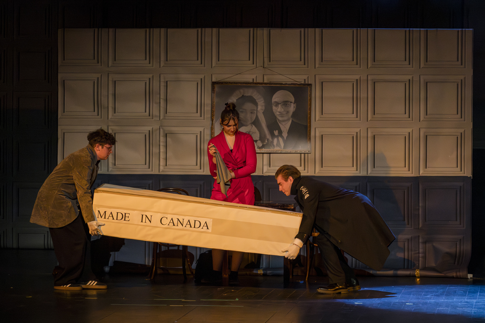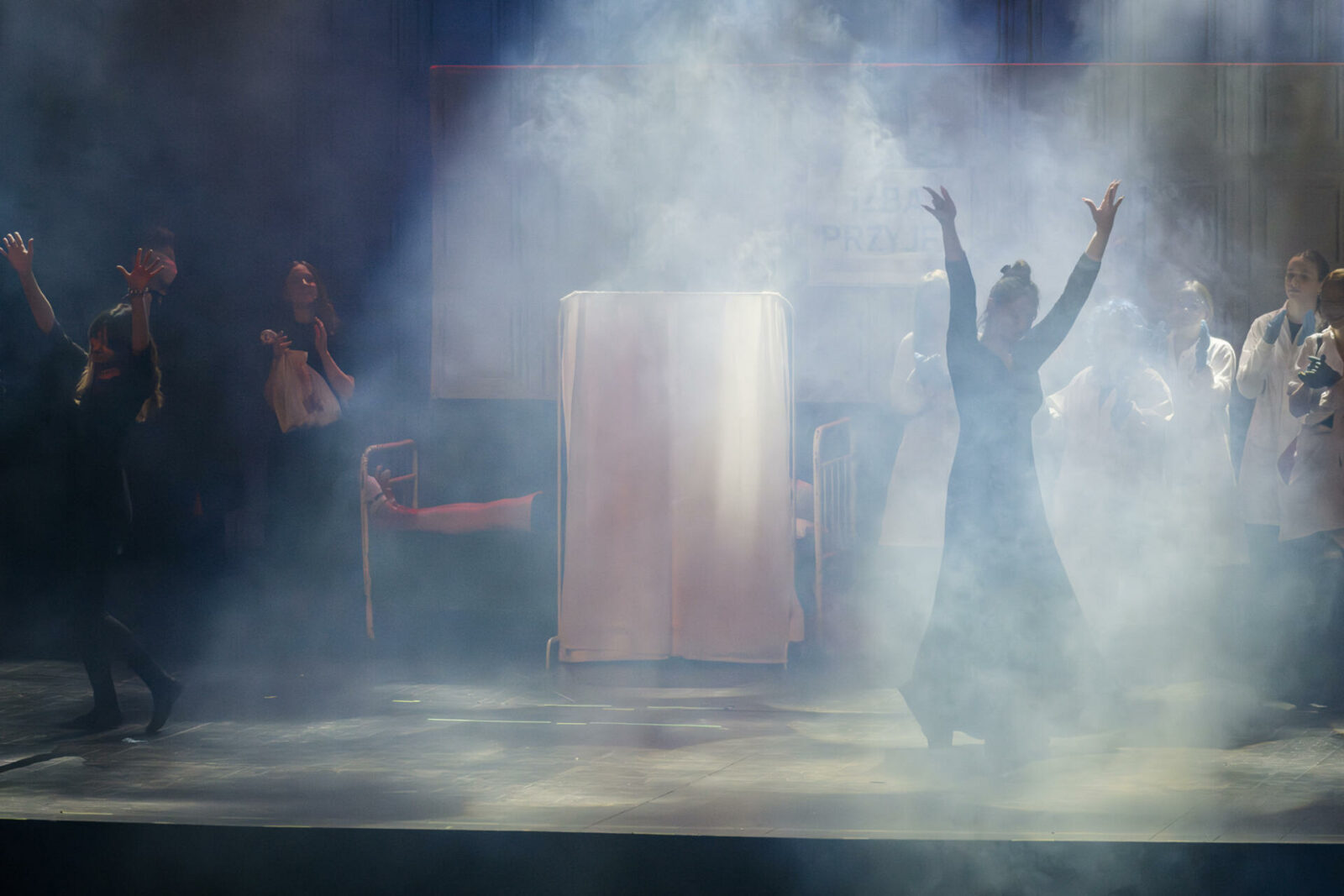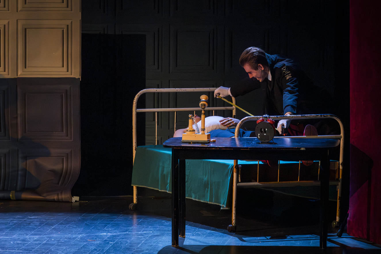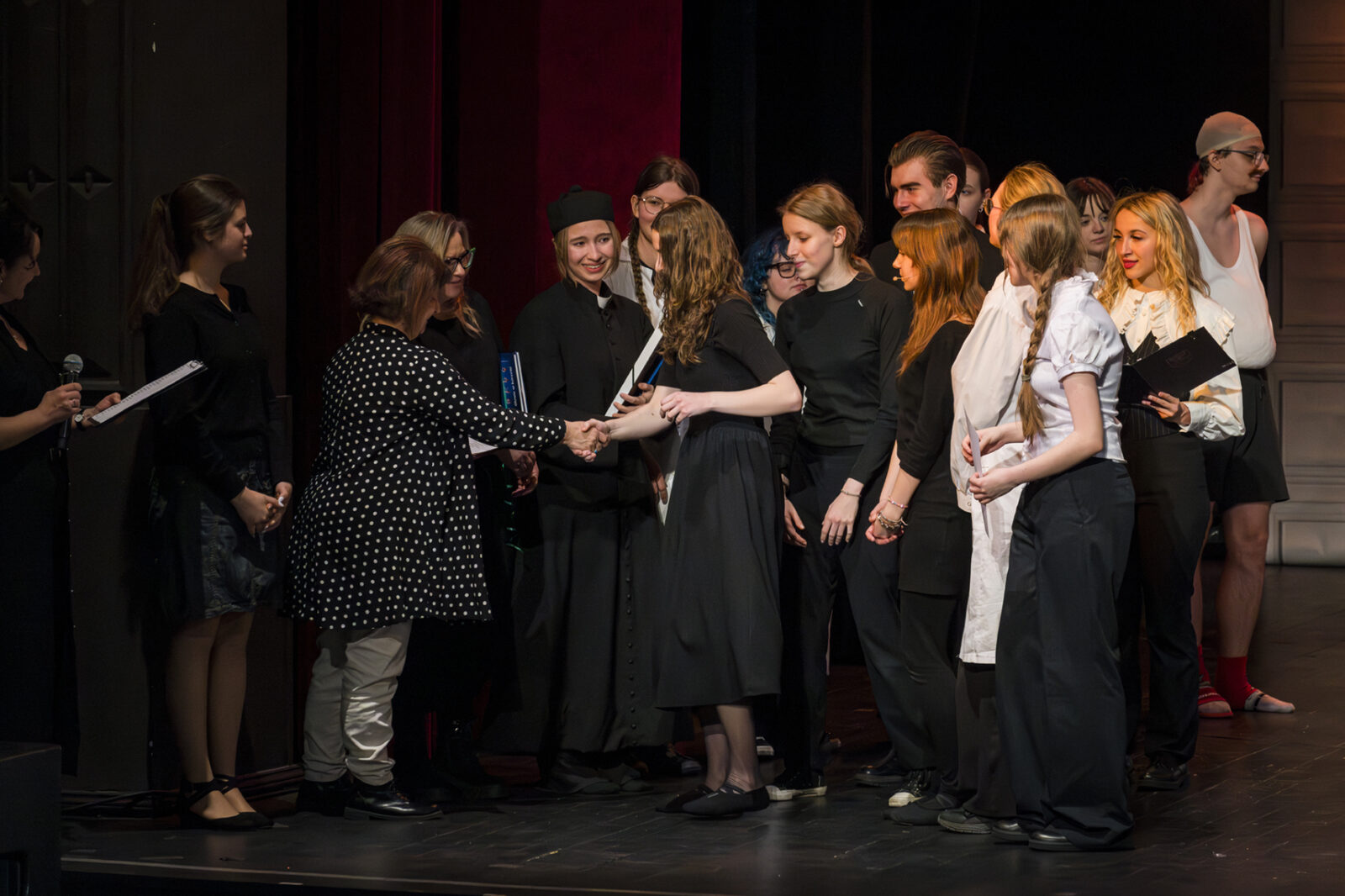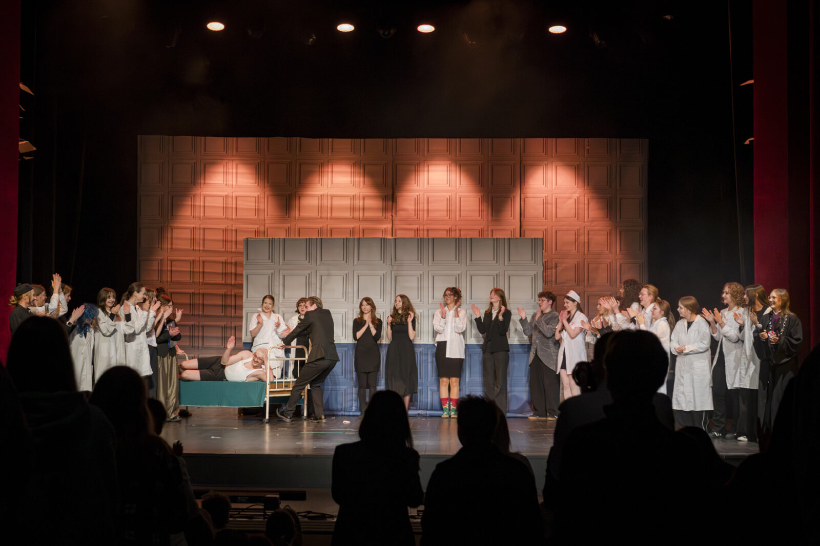 01.04.2026 r. – groteskowy humor i satyryczne zacięcie w czarnej komedii obnażającej małomiasteczkową mentalność w pogoni za sensacją. Szkolne Koło Teatralne „Adamantem” pod kierownictwem Ewy Pawik. Fot.: M. Wesołowski