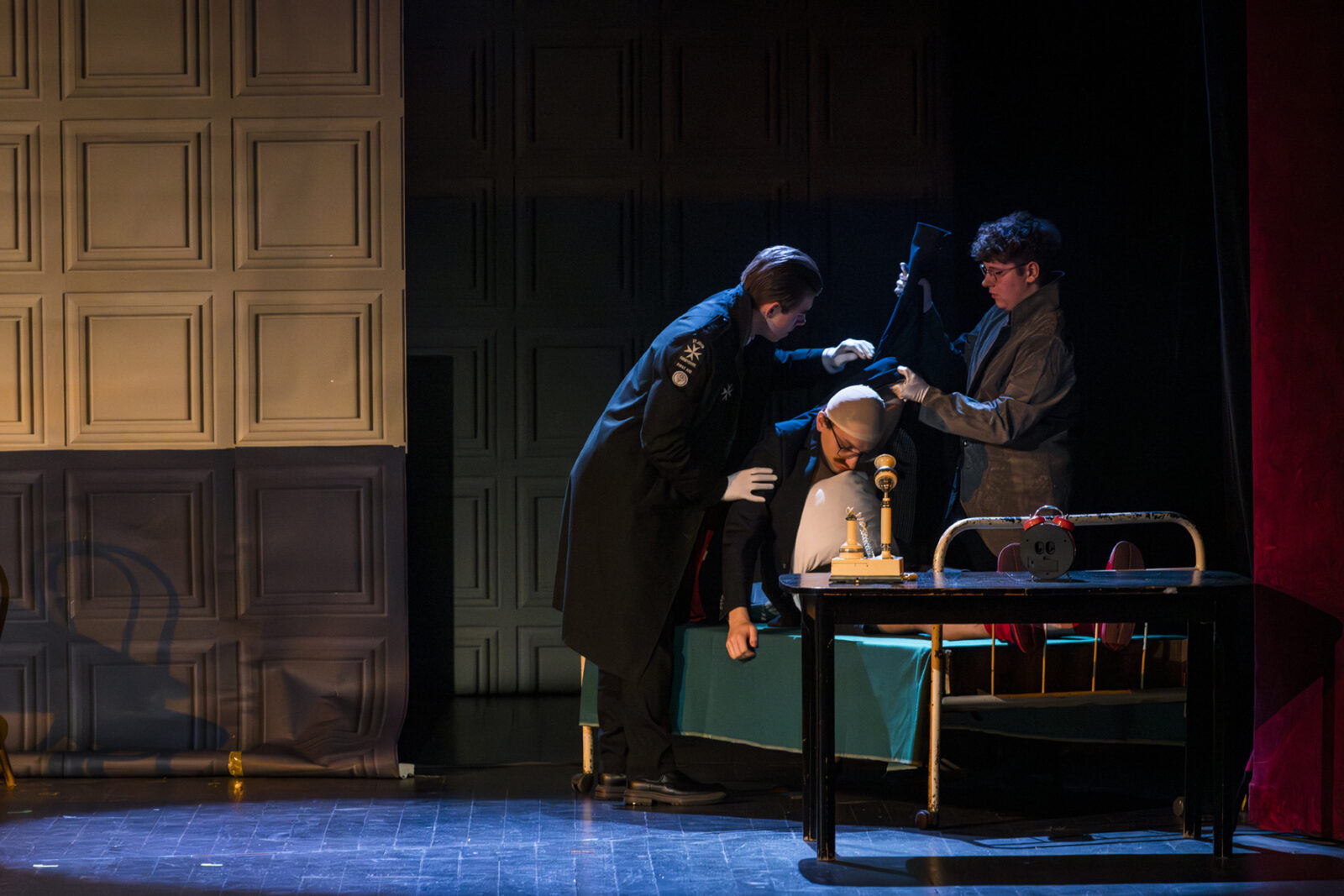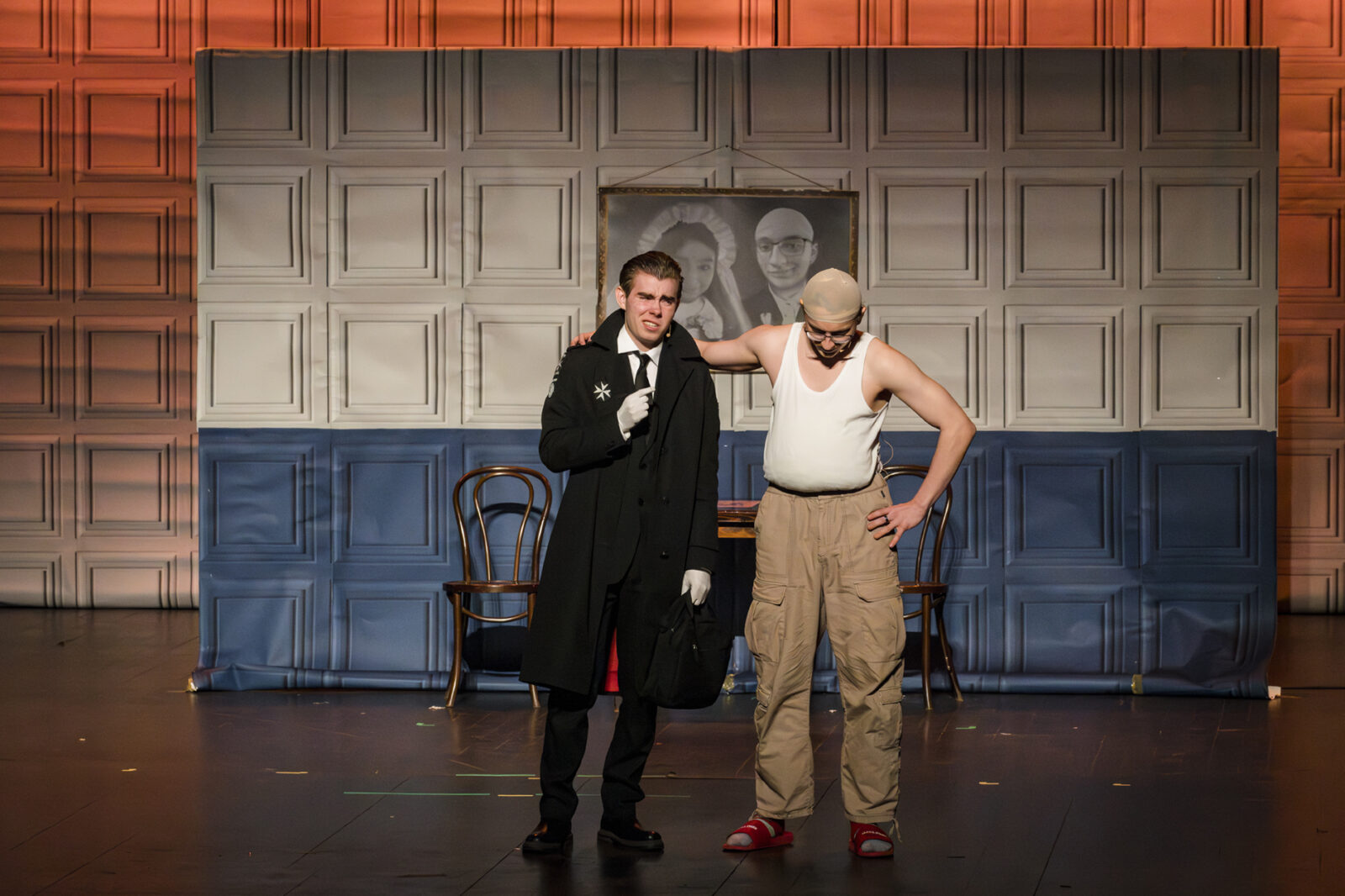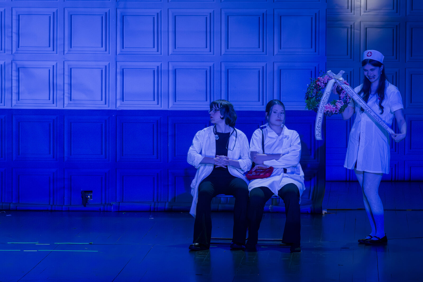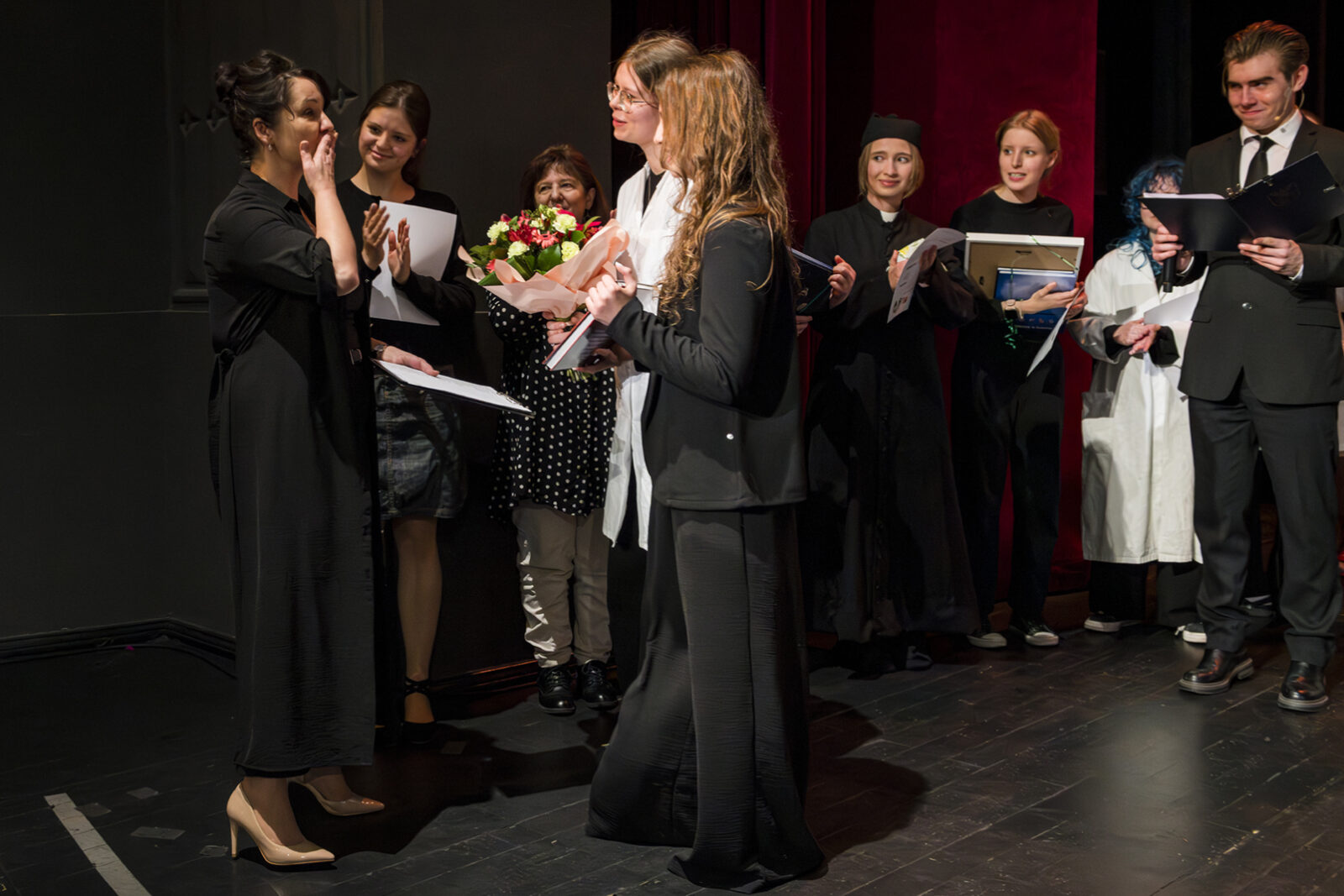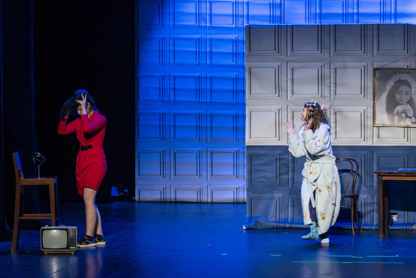01.04.2026 r. – groteskowy humor i satyryczne zacięcie w czarnej komedii obnażającej małomiasteczkową mentalność w pogoni za sensacją. Szkolne Koło Teatralne „Adamantem” pod kierownictwem Ewy Pawik. Fot.: M. Wesołowski