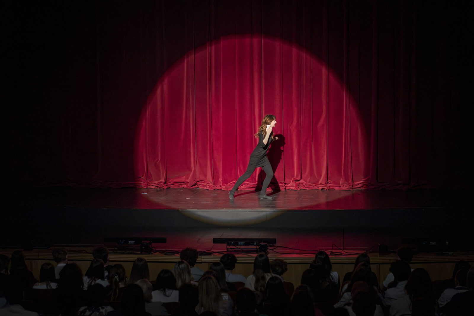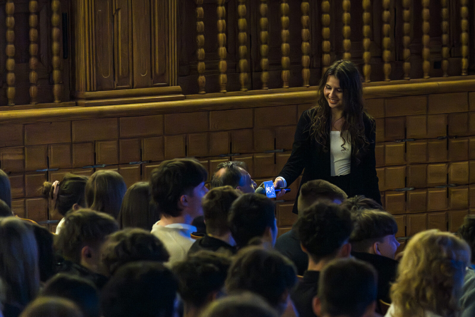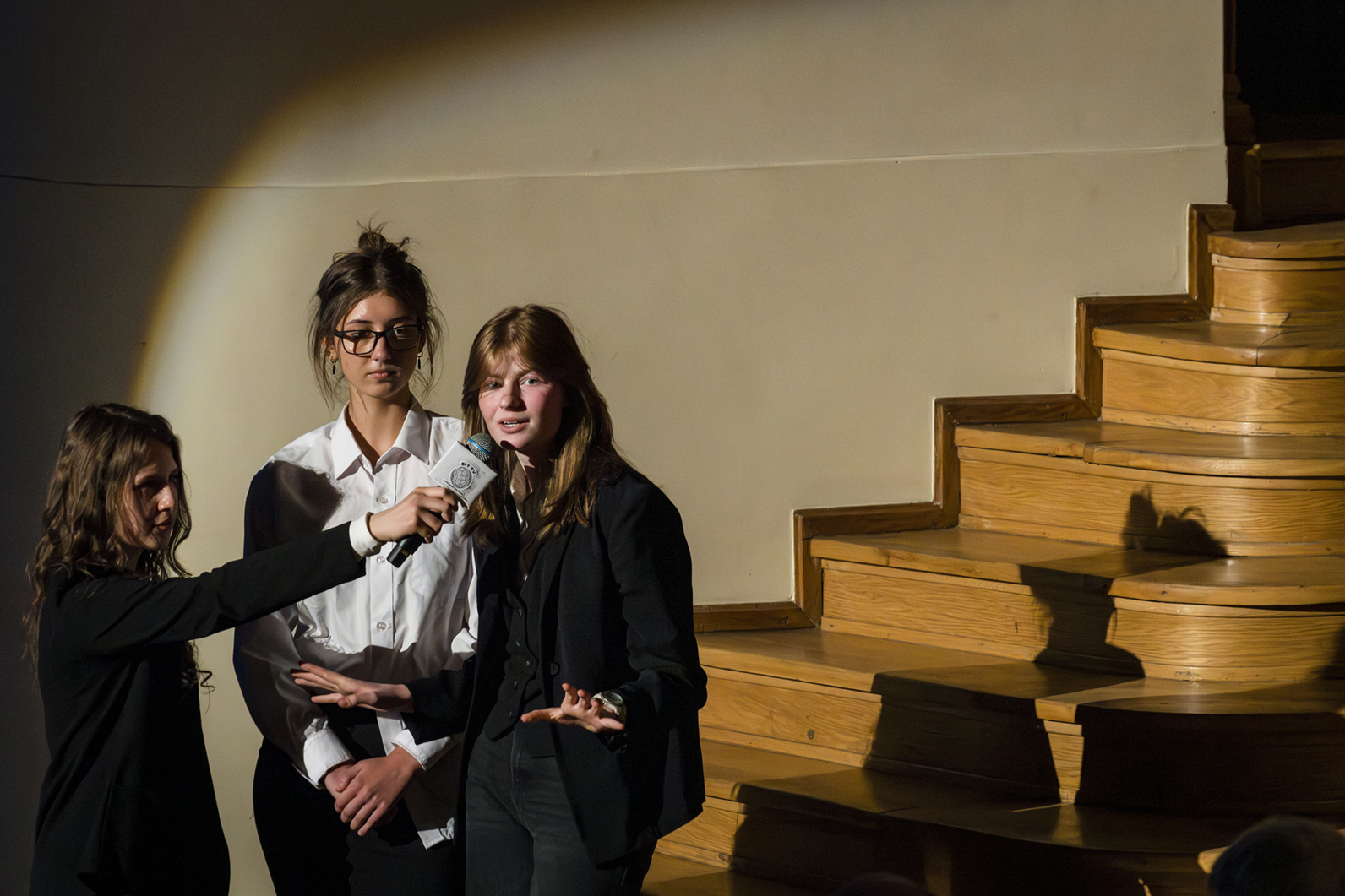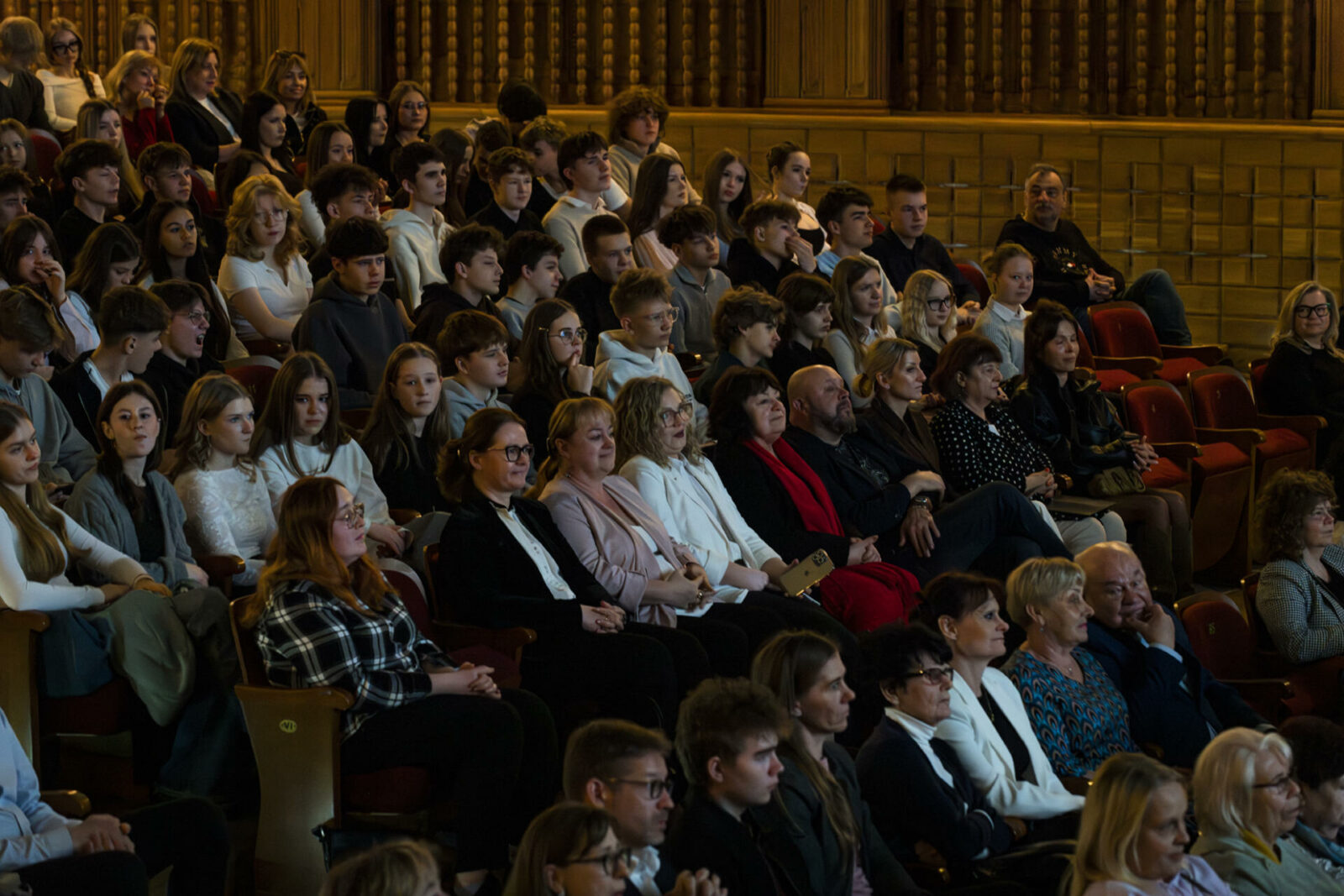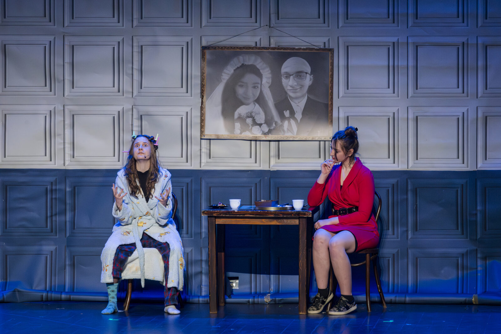01.04.2026 r. – groteskowy humor i satyryczne zacięcie w czarnej komedii obnażającej małomiasteczkową mentalność w pogoni za sensacją. Szkolne Koło Teatralne „Adamantem” pod kierownictwem Ewy Pawik. Fot.: M. Wesołowski