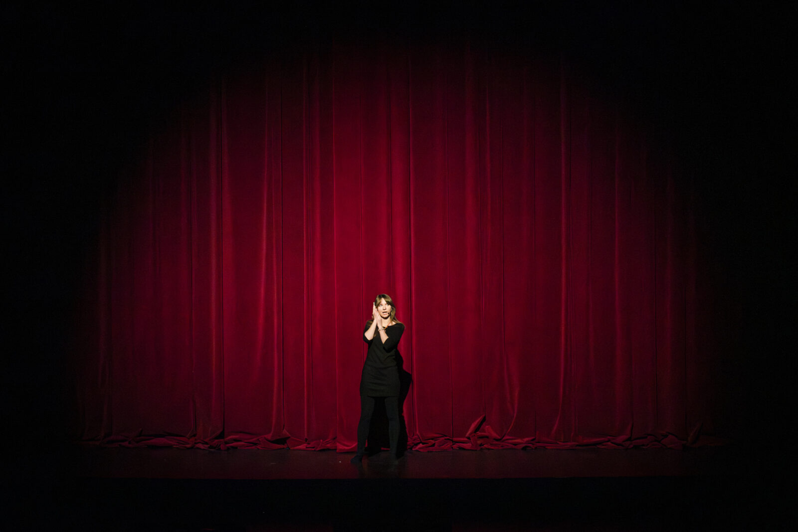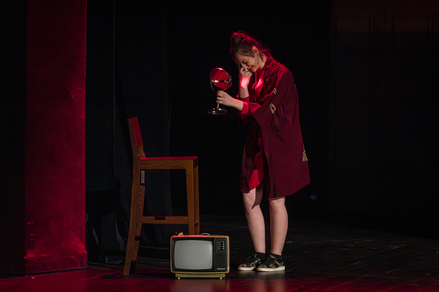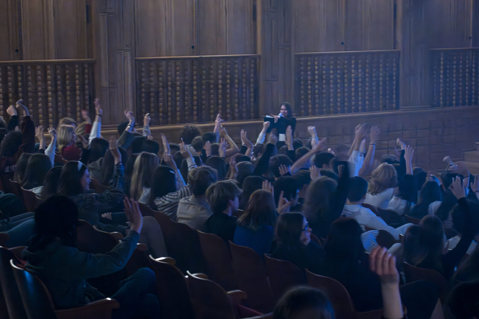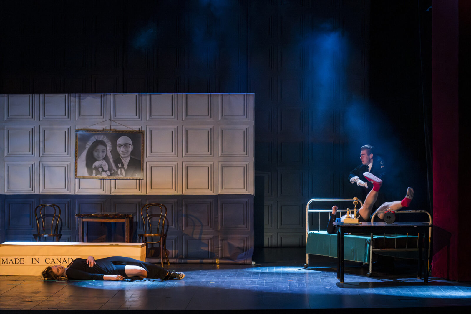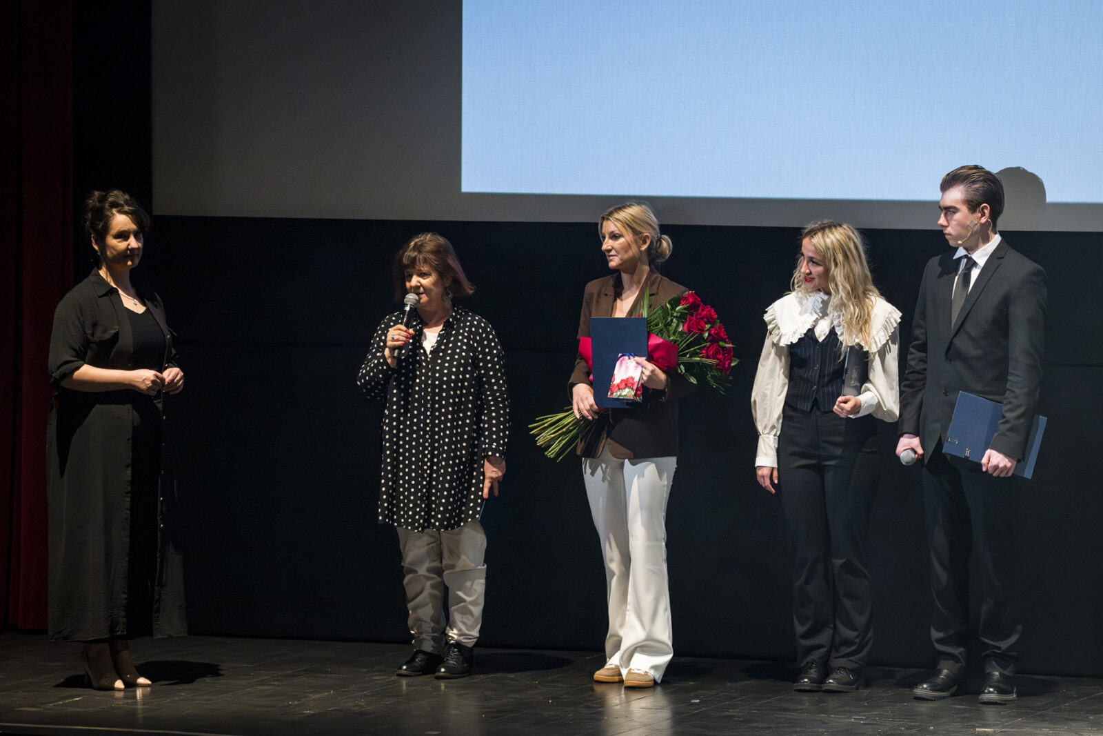 01.04.2026 r. – groteskowy humor i satyryczne zacięcie w czarnej komedii obnażającej małomiasteczkową mentalność w pogoni za sensacją. Szkolne Koło Teatralne „Adamantem” pod kierownictwem Ewy Pawik. Fot.: M. Wesołowski