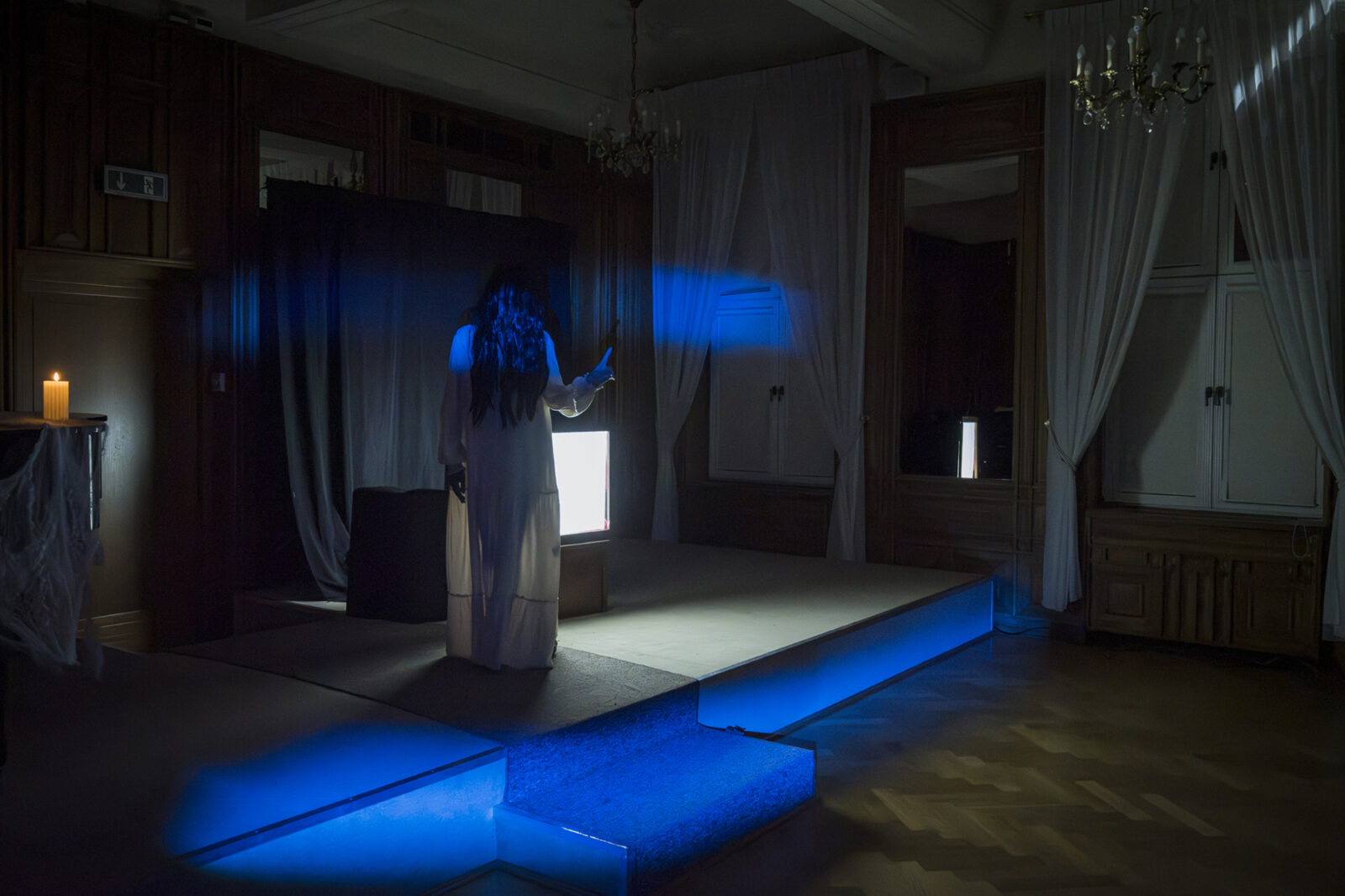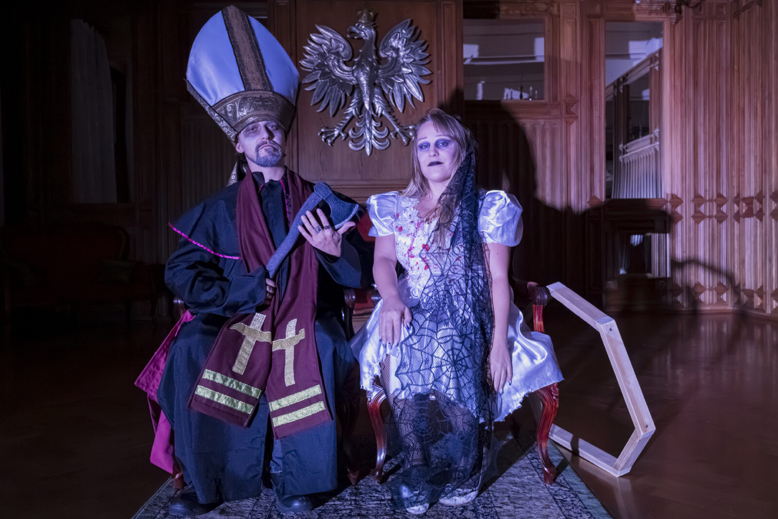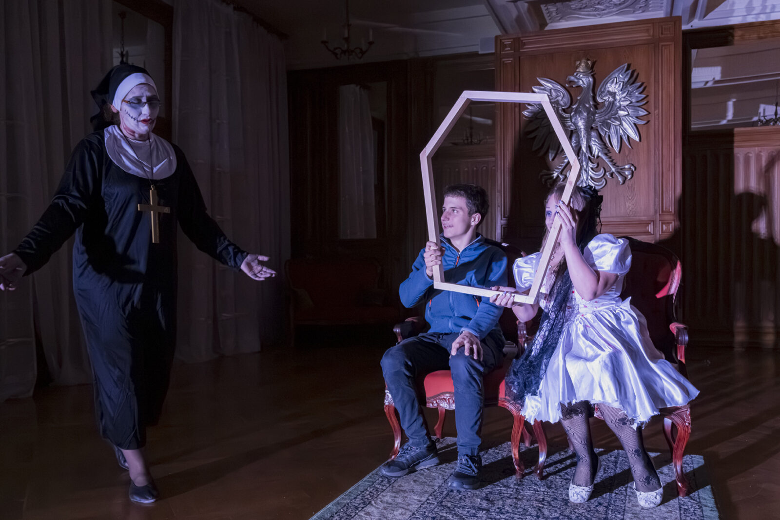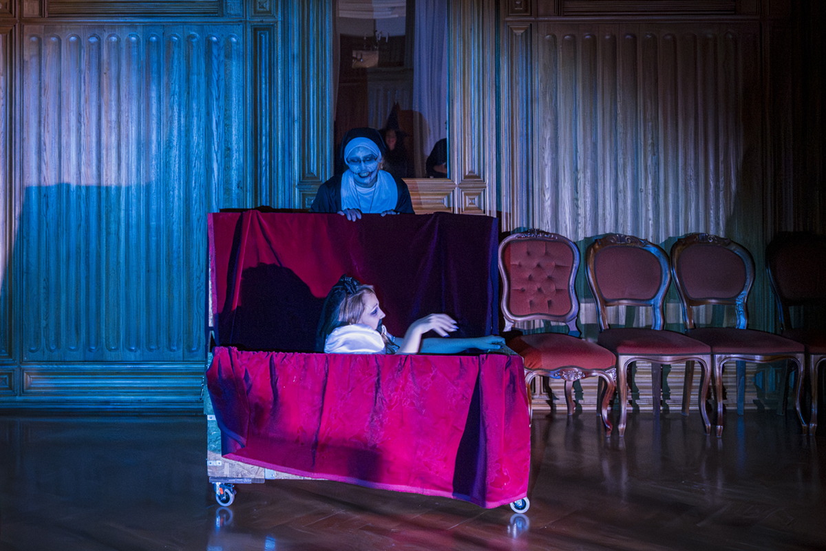 31.10.2025 r. Wnętrza Pałacu wypełnione grozą i tajemnicą, której lepiej nie zgłębiać, podczas halloweenowego zwiedzania . Fot.: M. Wesołowski