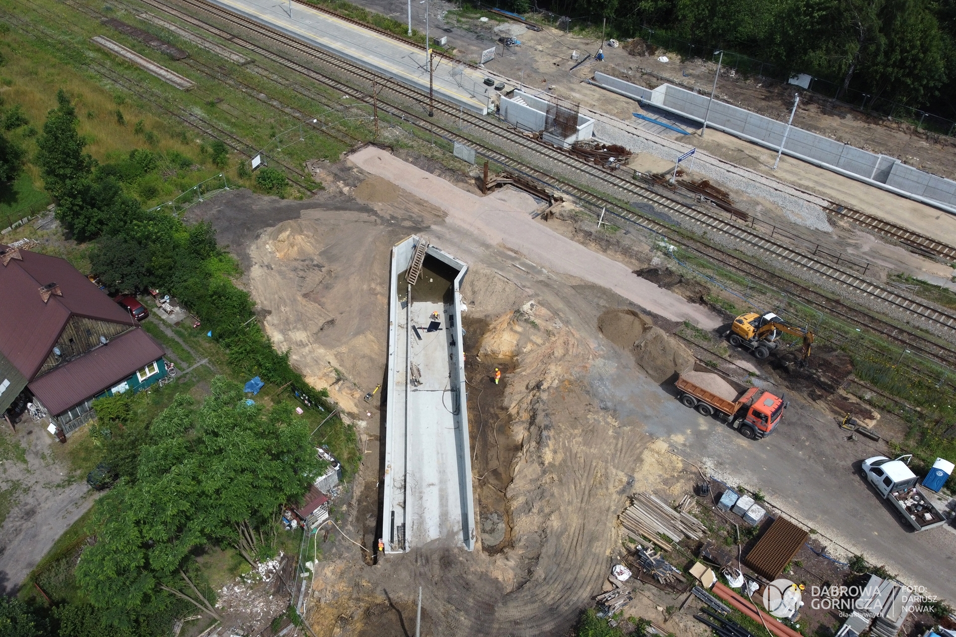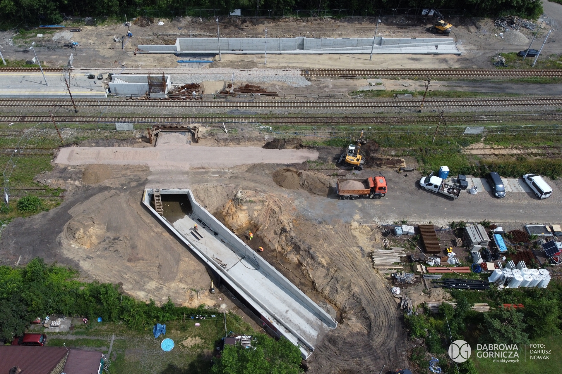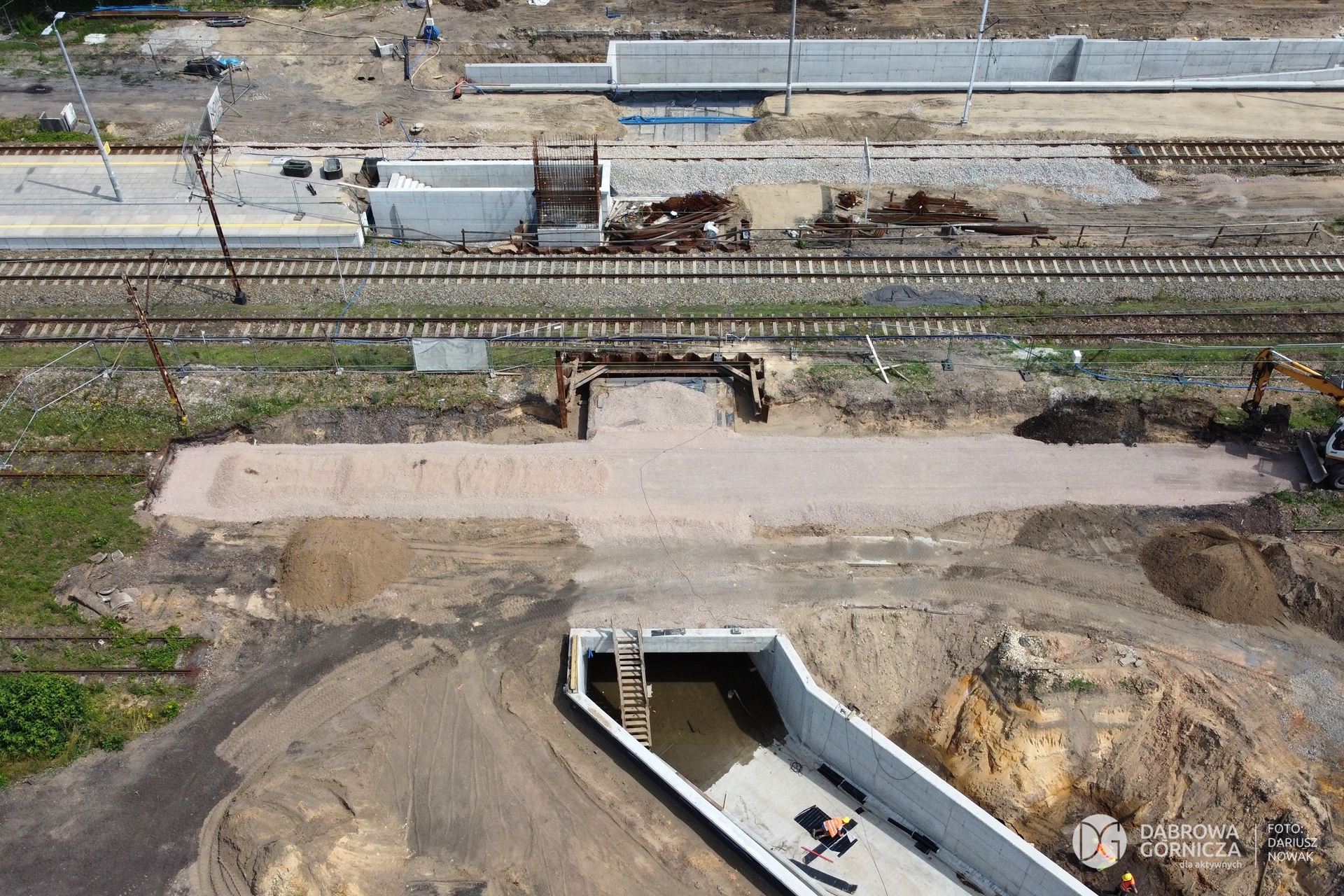 2023.07.04 DG – Strzemieszyce Wielkie. Prace przy budowie tunelu pieszo-rowerowego pod torami stacji Dąbrowa Górnicza Strzemieszyce. FOTO: Dariusz Nowak (nddg)