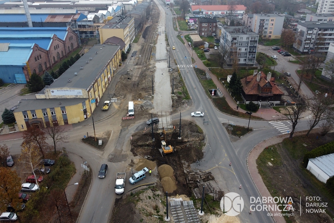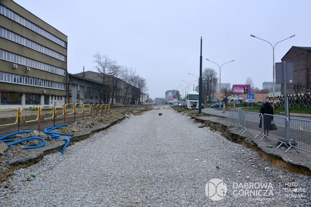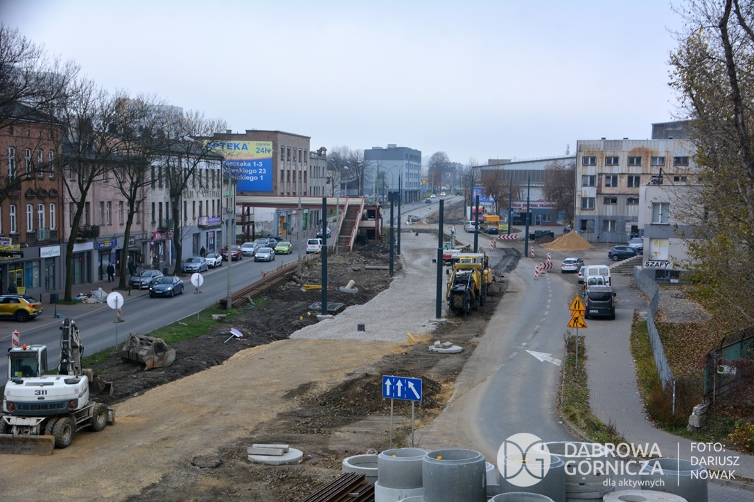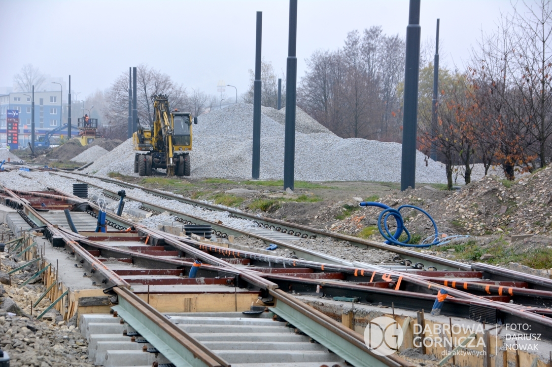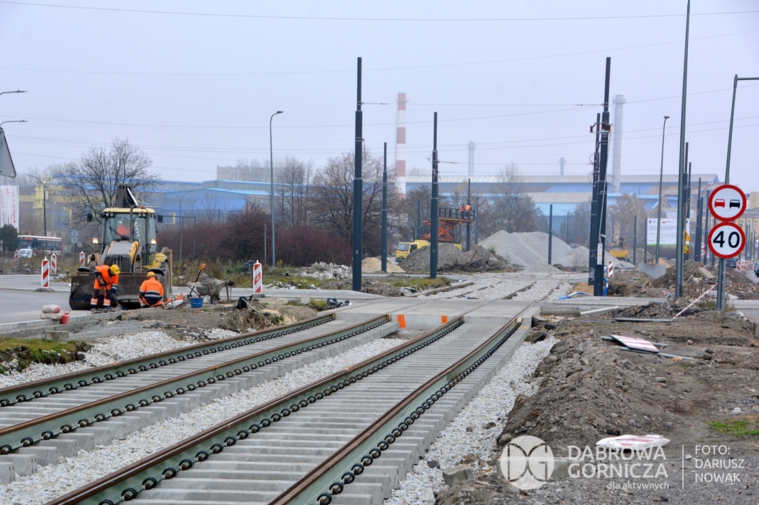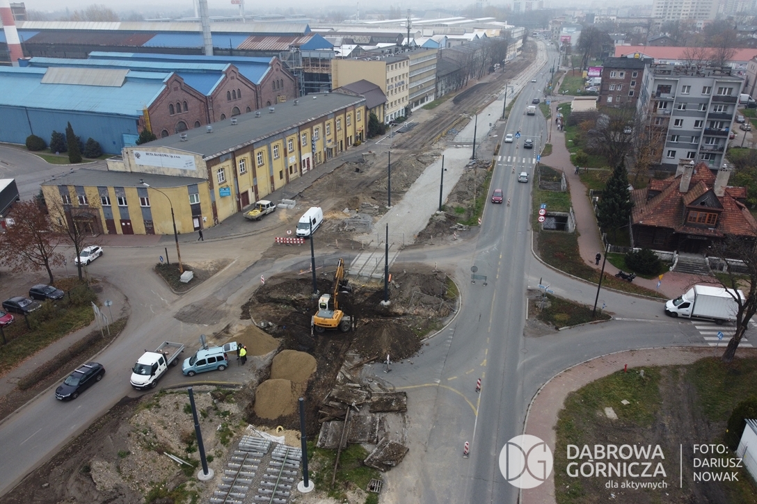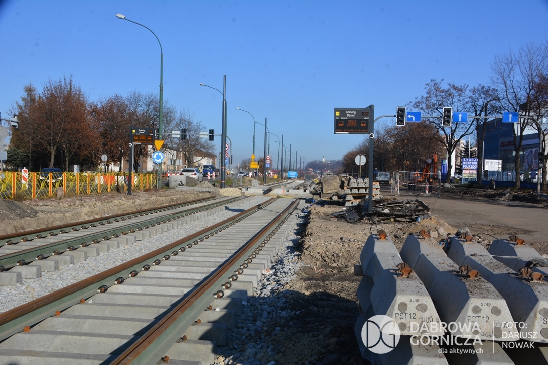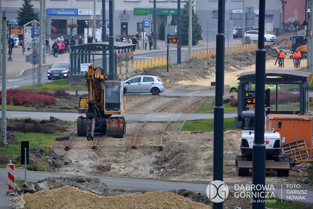 2022.11.14 DG – Centrum / Reden / Gołonóg. Prace przy modernizacji torowiska tramwajowego w głównym ciągu dąbrowskich ulic. FOTO: Dariusz Nowak (nddg)