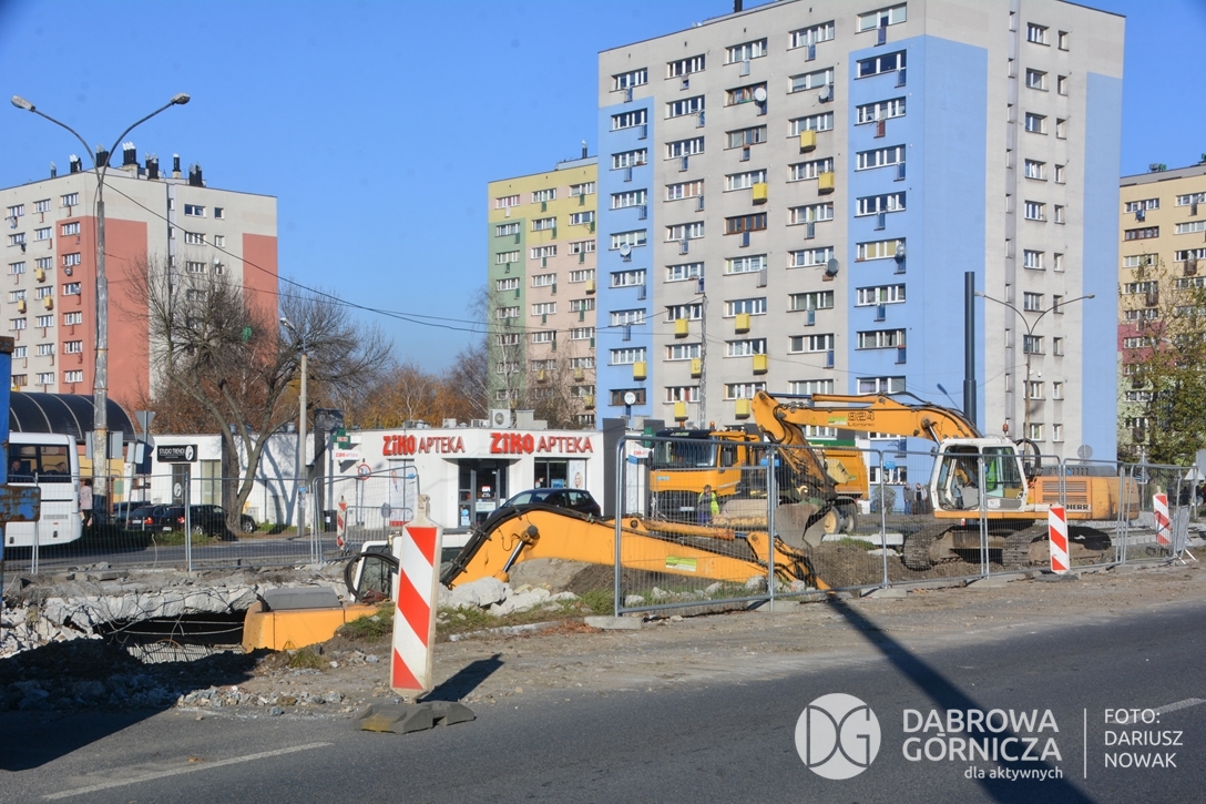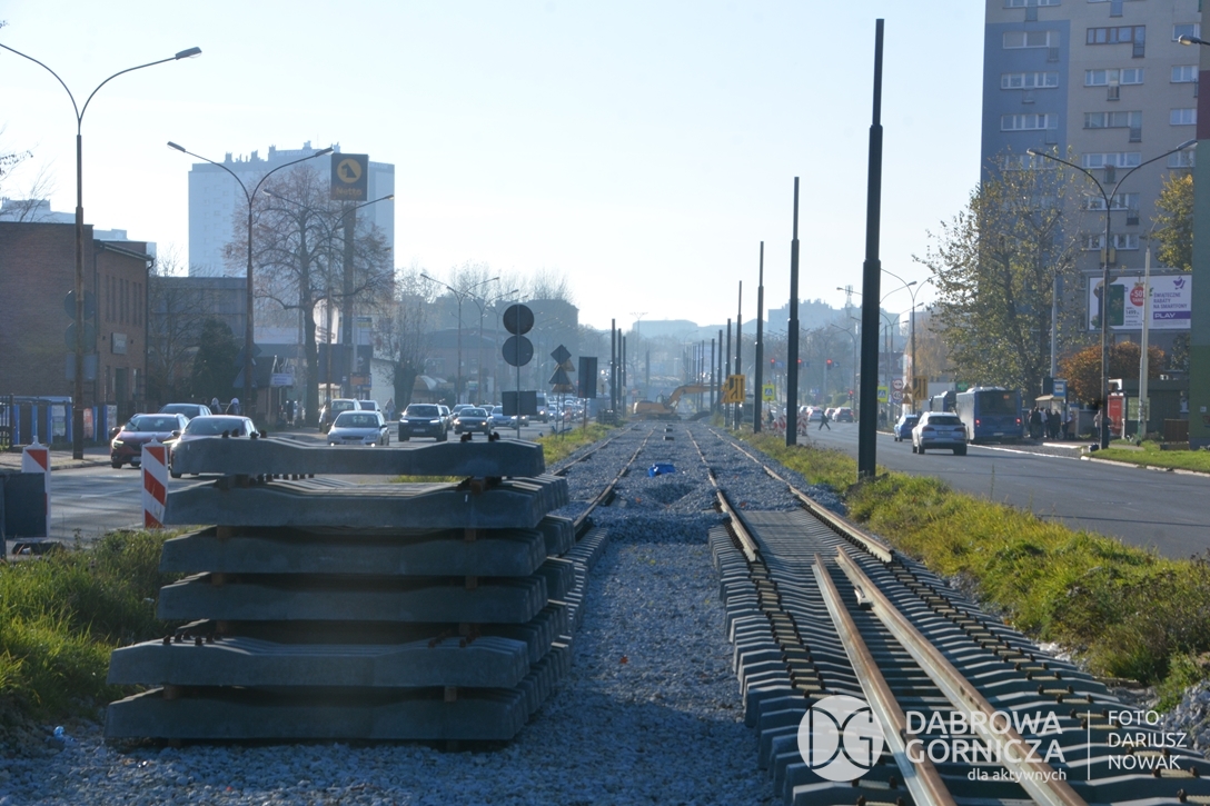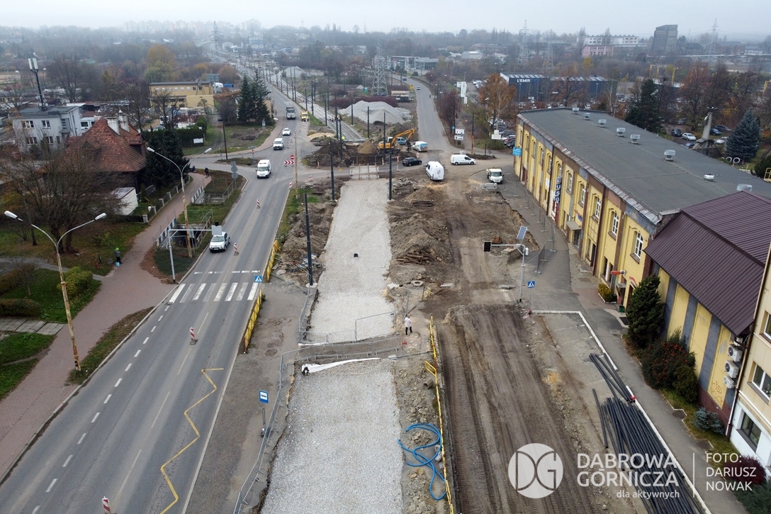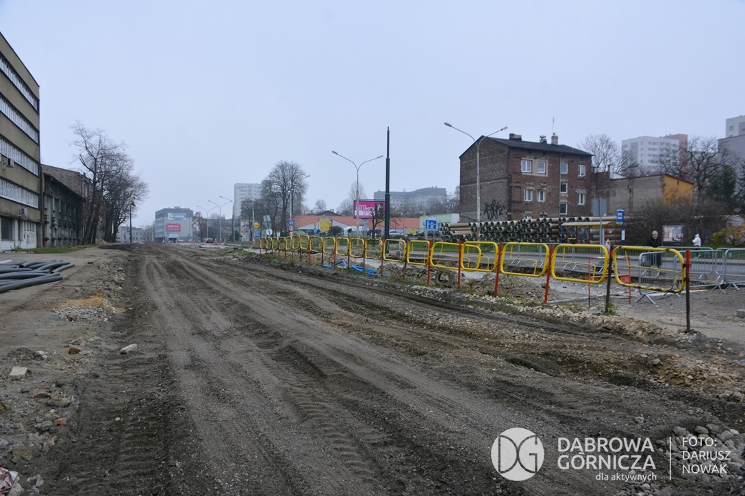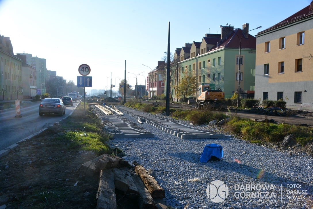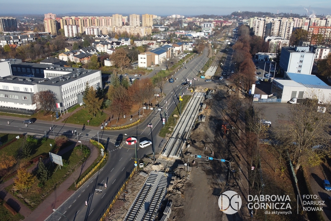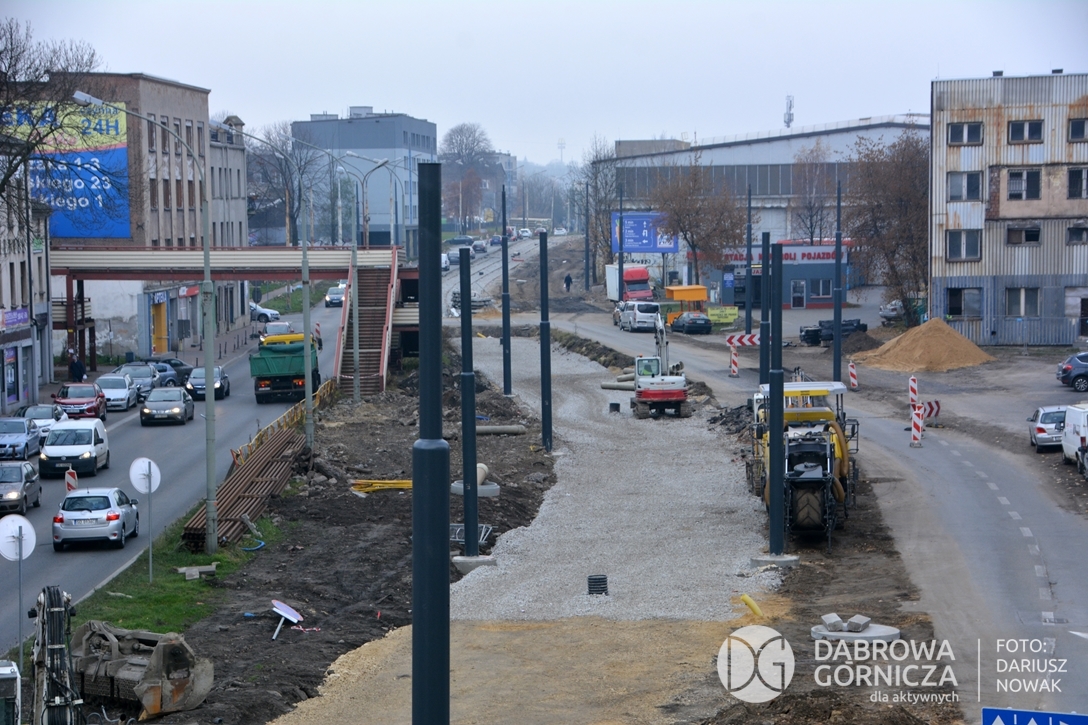 2022.11.14 DG – Centrum / Reden / Gołonóg. Prace przy modernizacji torowiska tramwajowego w głównym ciągu dąbrowskich ulic. FOTO: Dariusz Nowak (nddg)