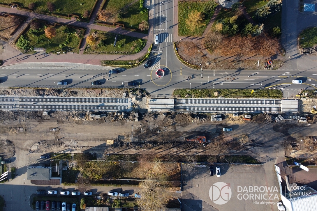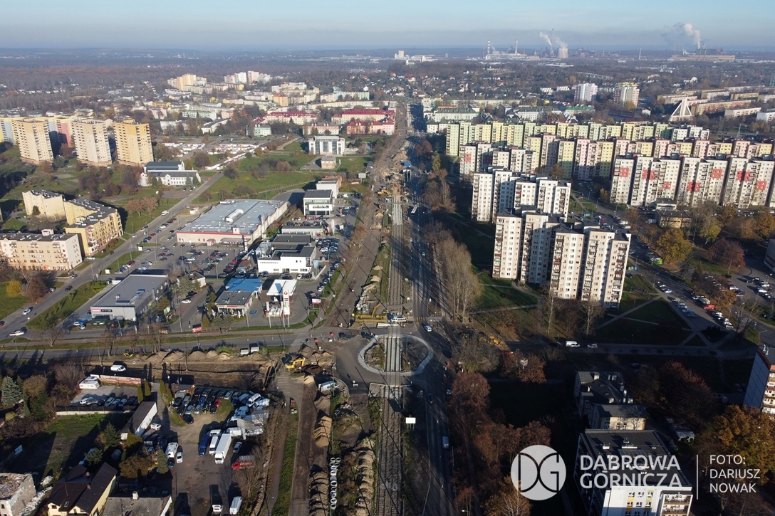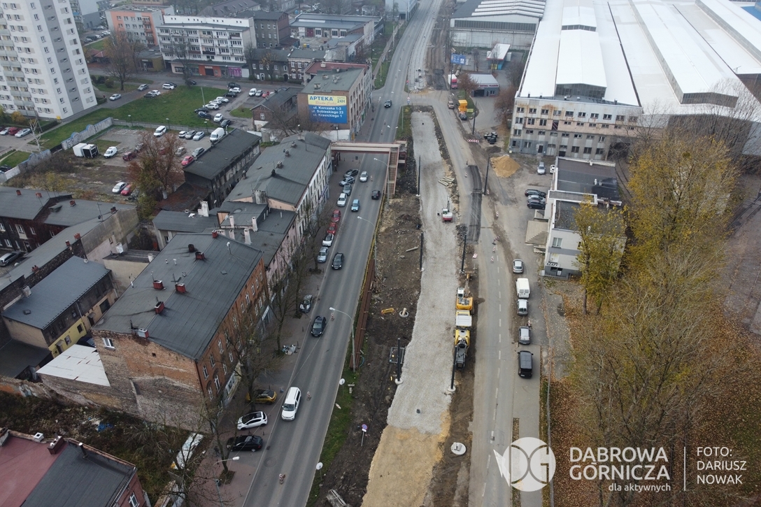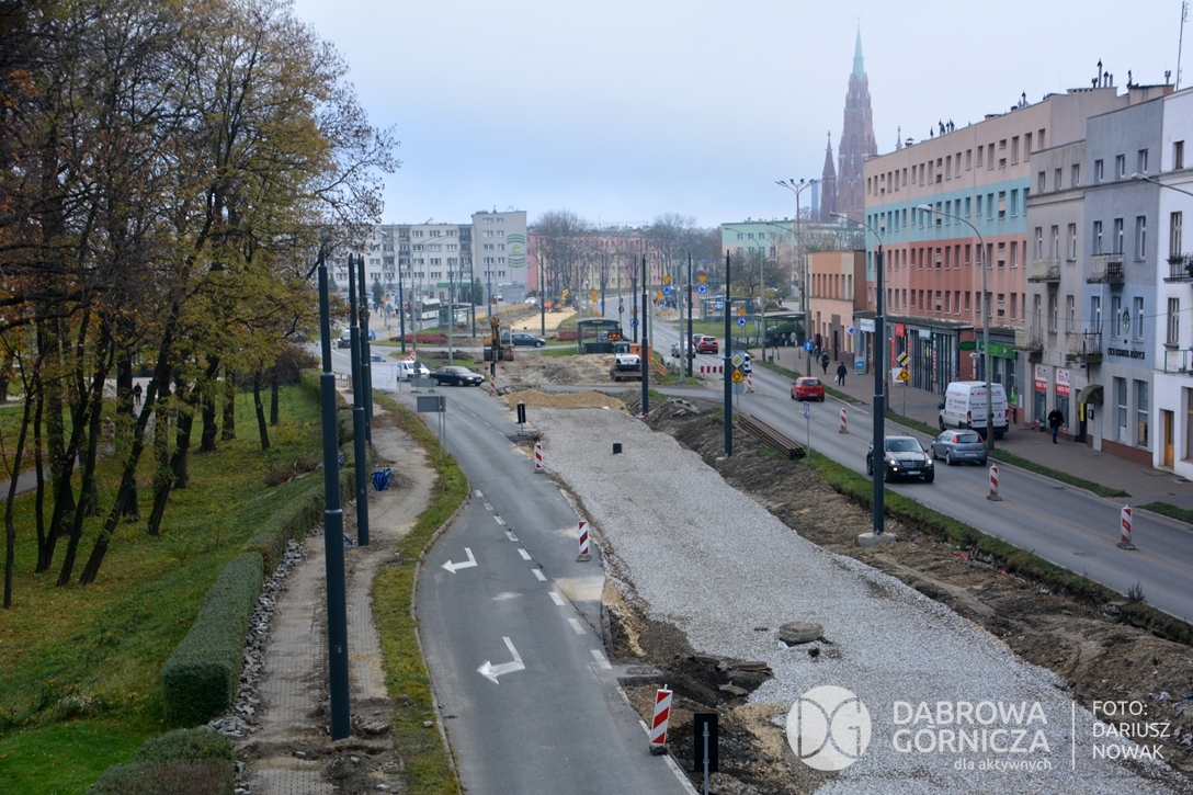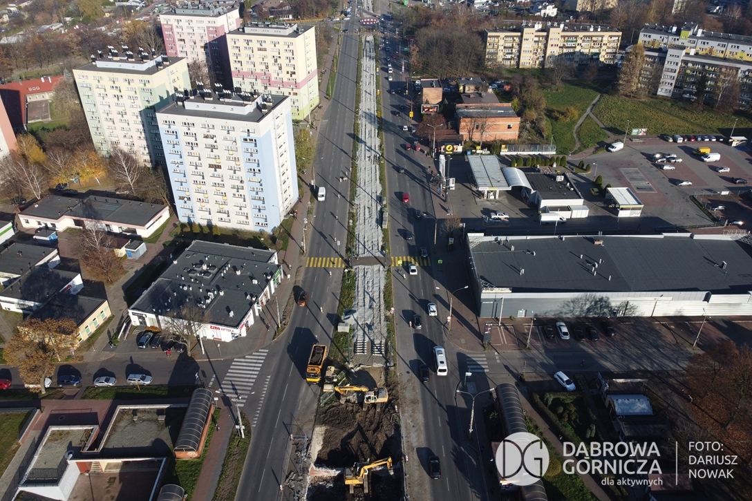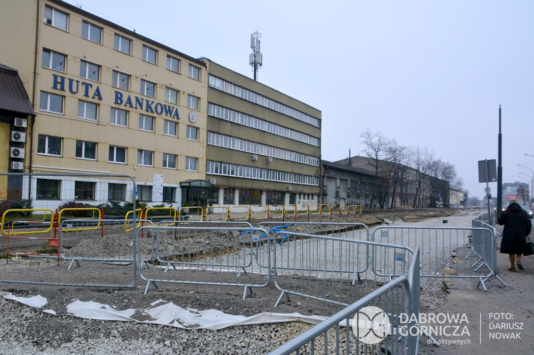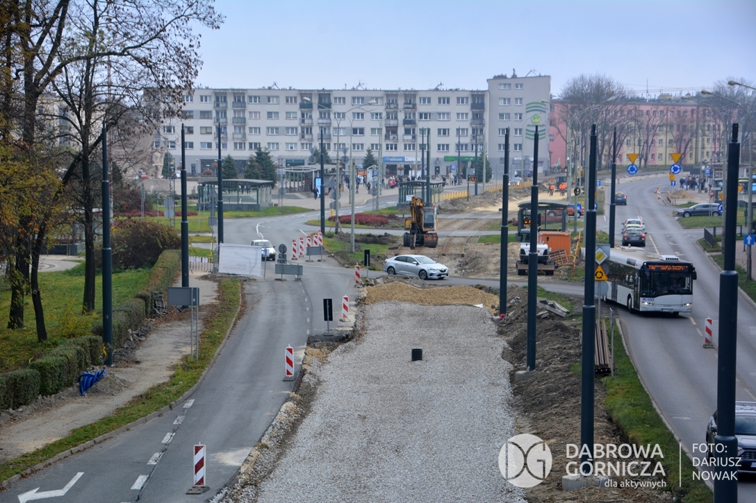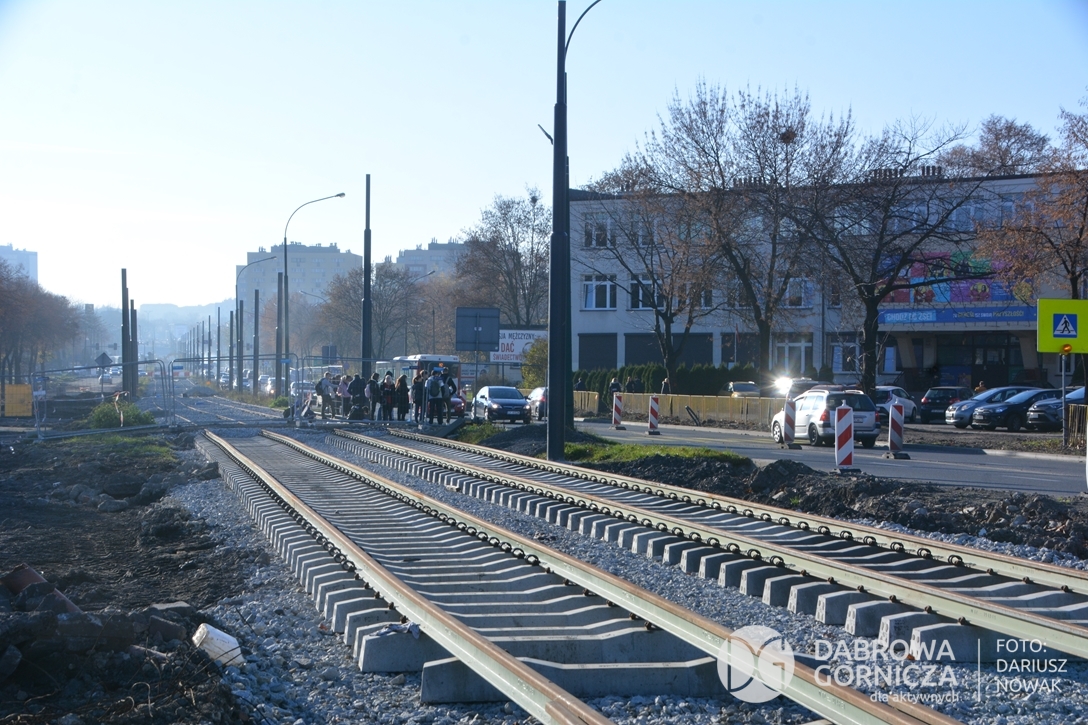 2022.11.14 DG – Centrum / Reden / Gołonóg. Prace przy modernizacji torowiska tramwajowego w głównym ciągu dąbrowskich ulic. FOTO: Dariusz Nowak (nddg)