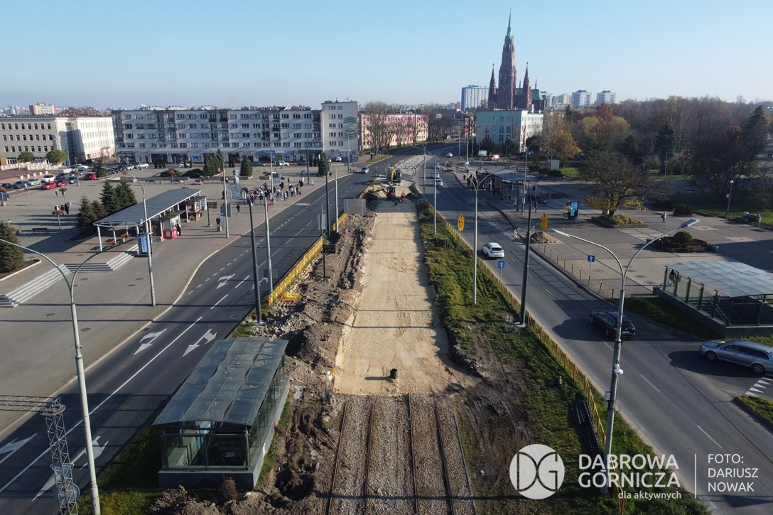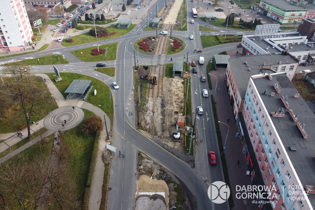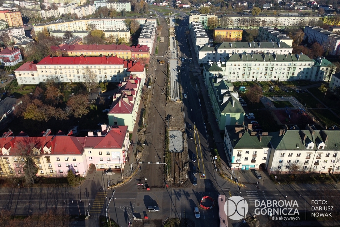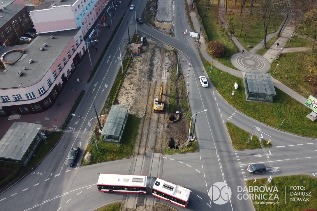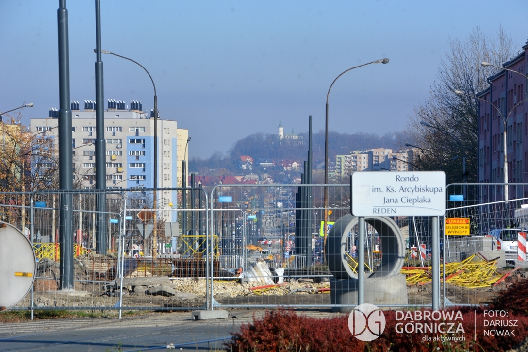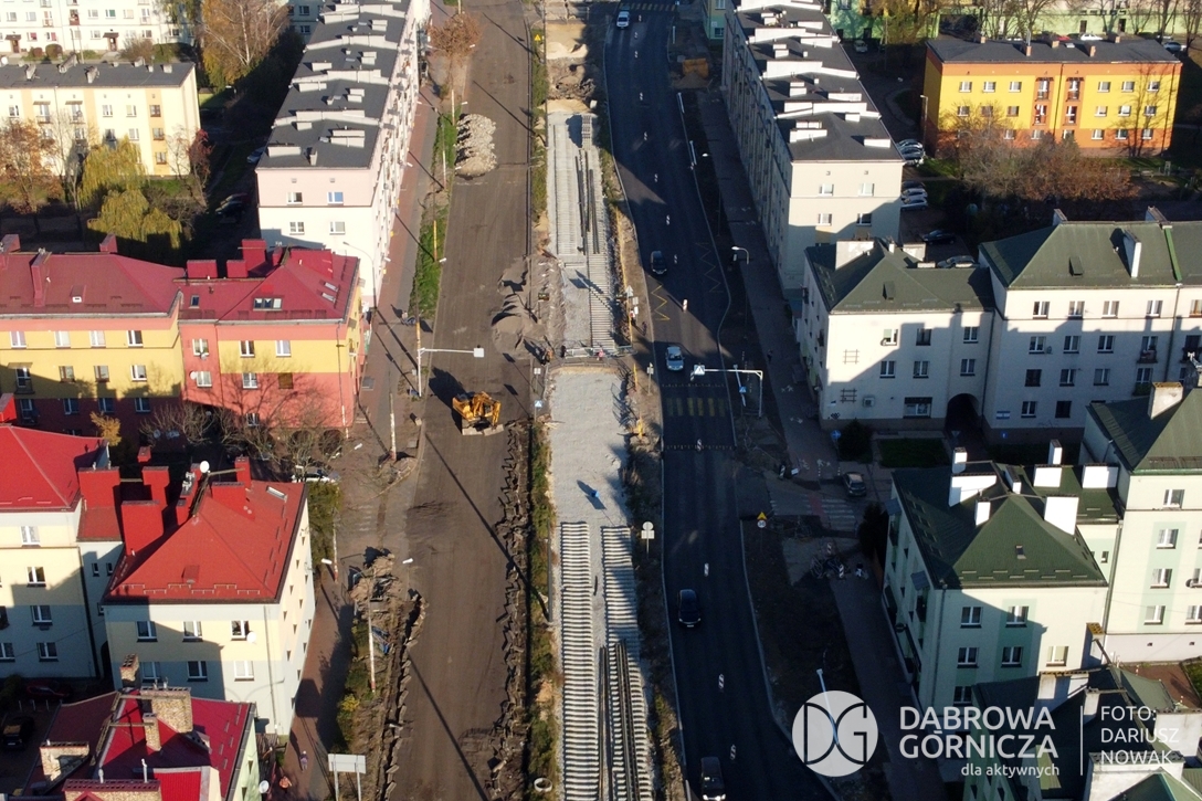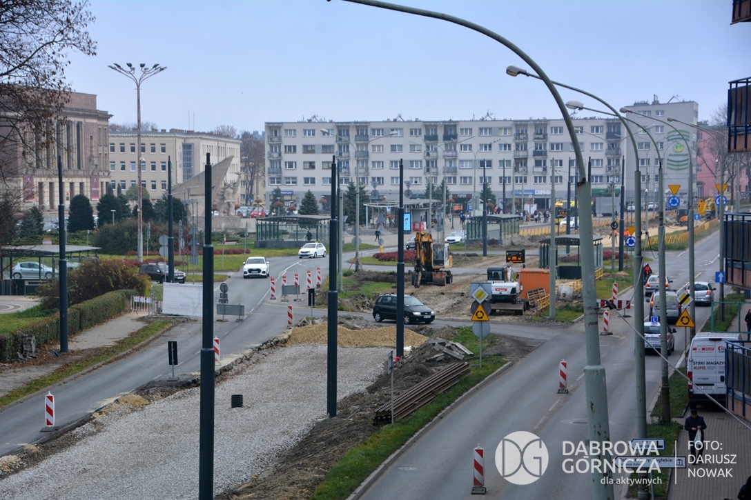 2022.11.14 DG – Centrum / Reden / Gołonóg. Prace przy modernizacji torowiska tramwajowego w głównym ciągu dąbrowskich ulic. FOTO: Dariusz Nowak (nddg)
