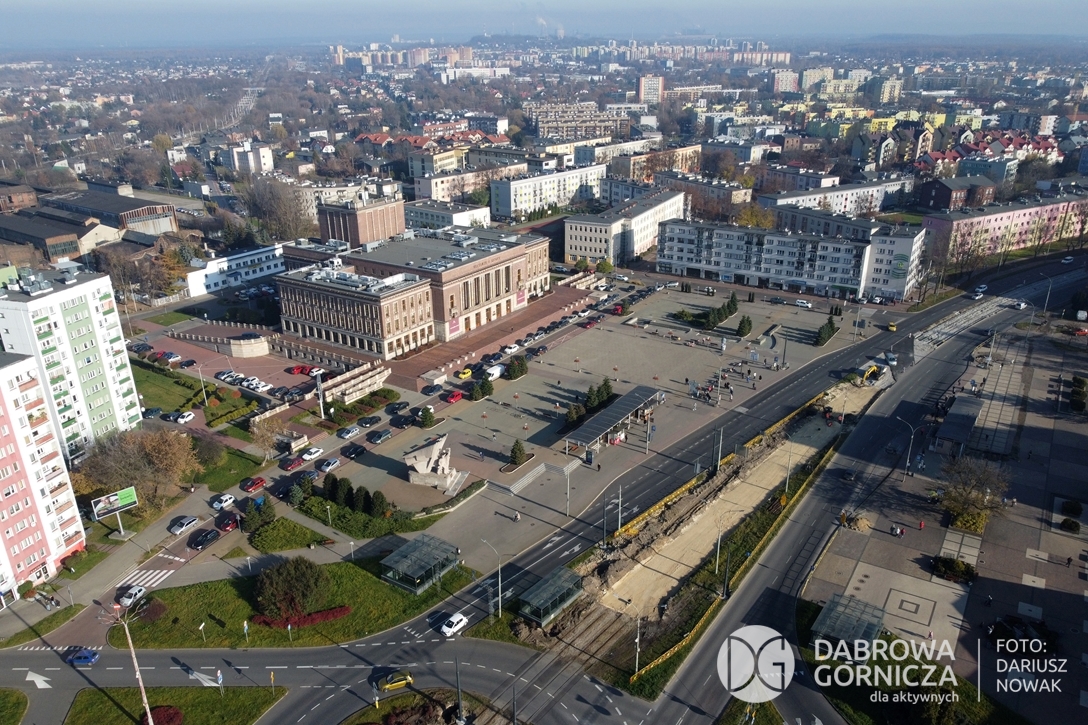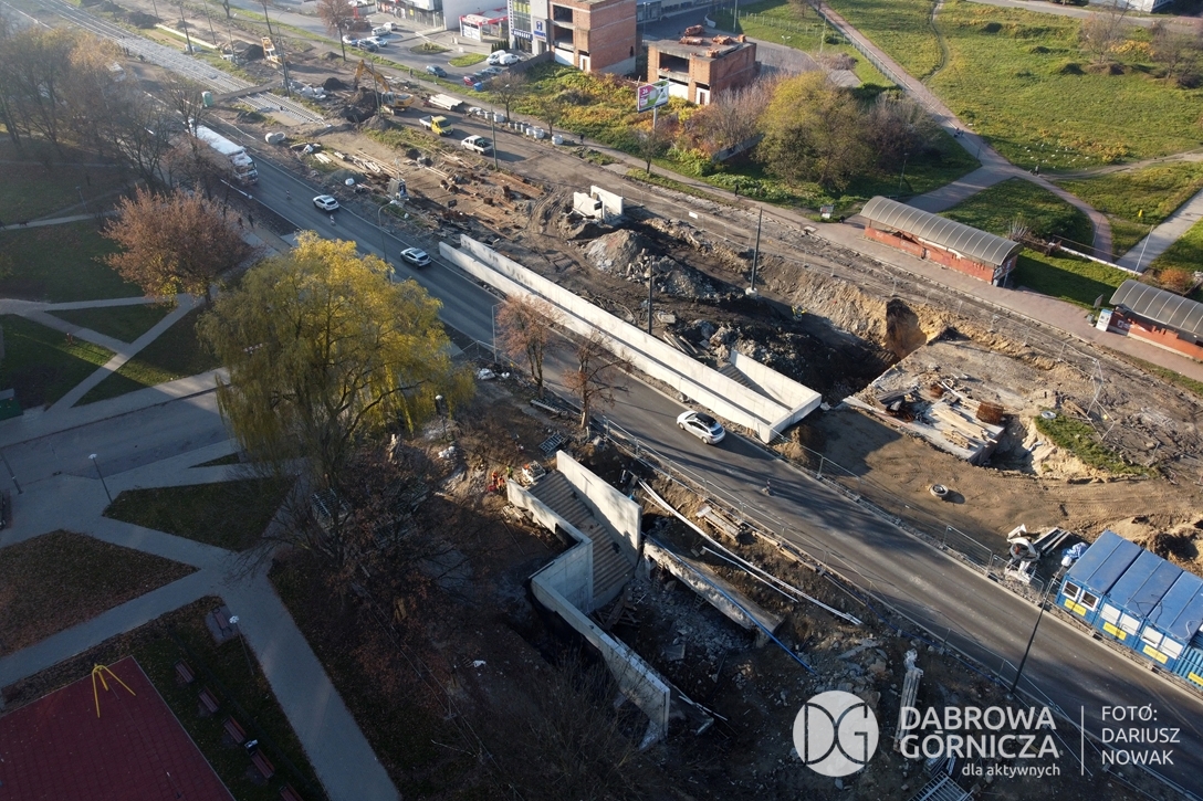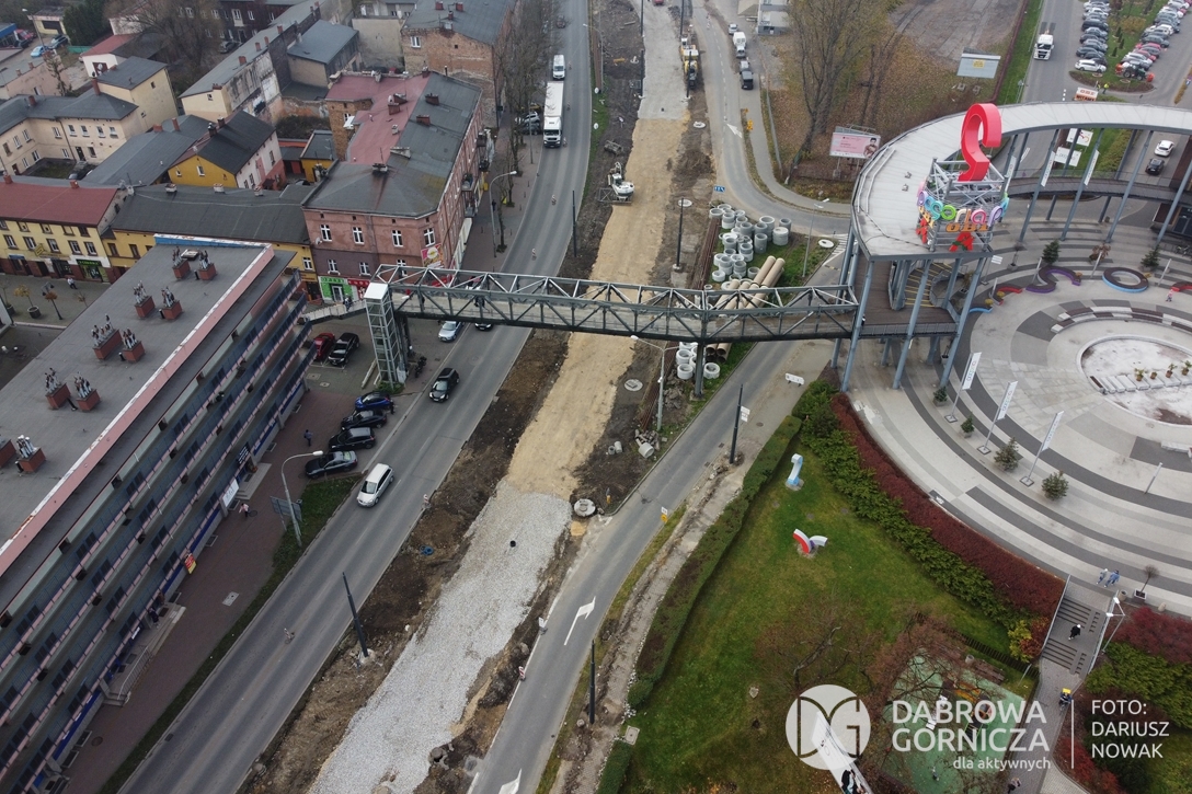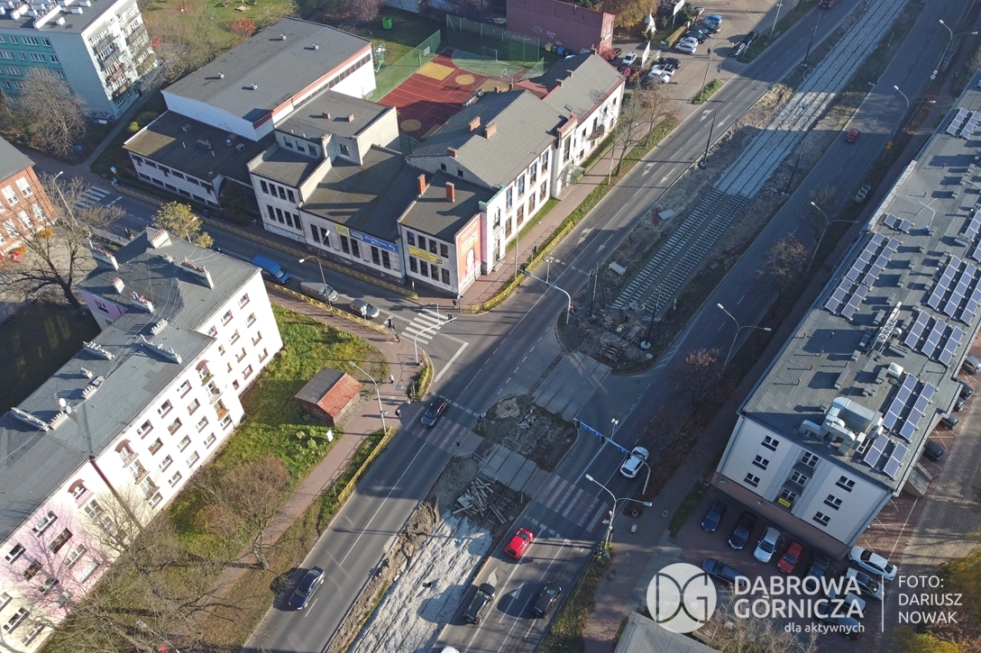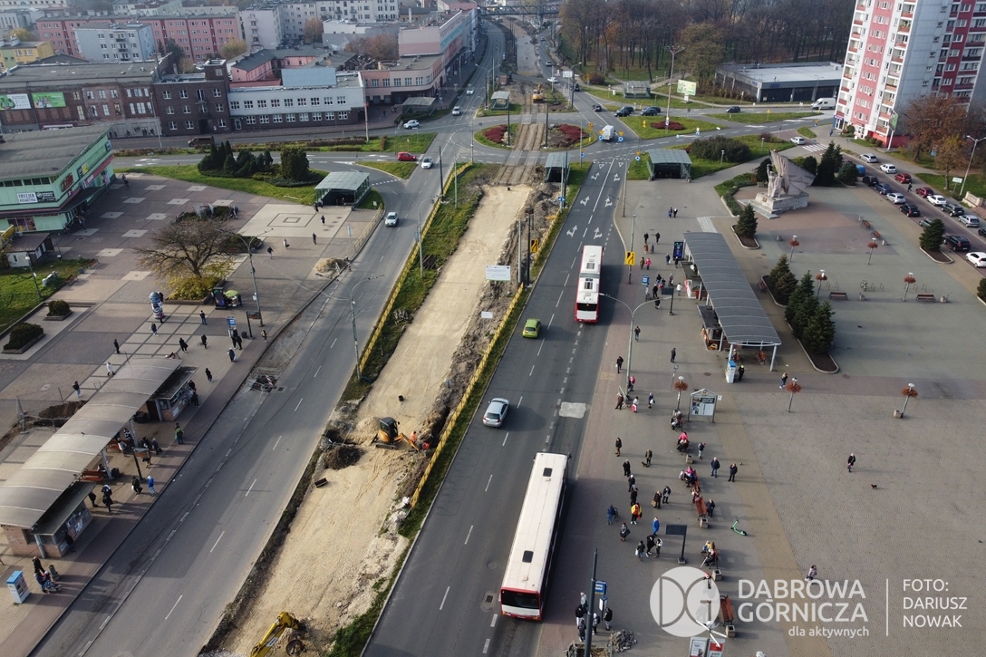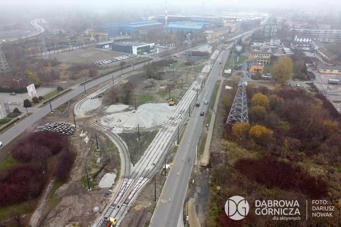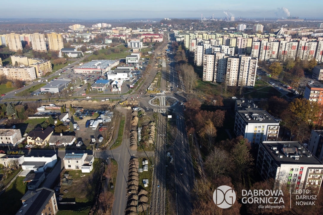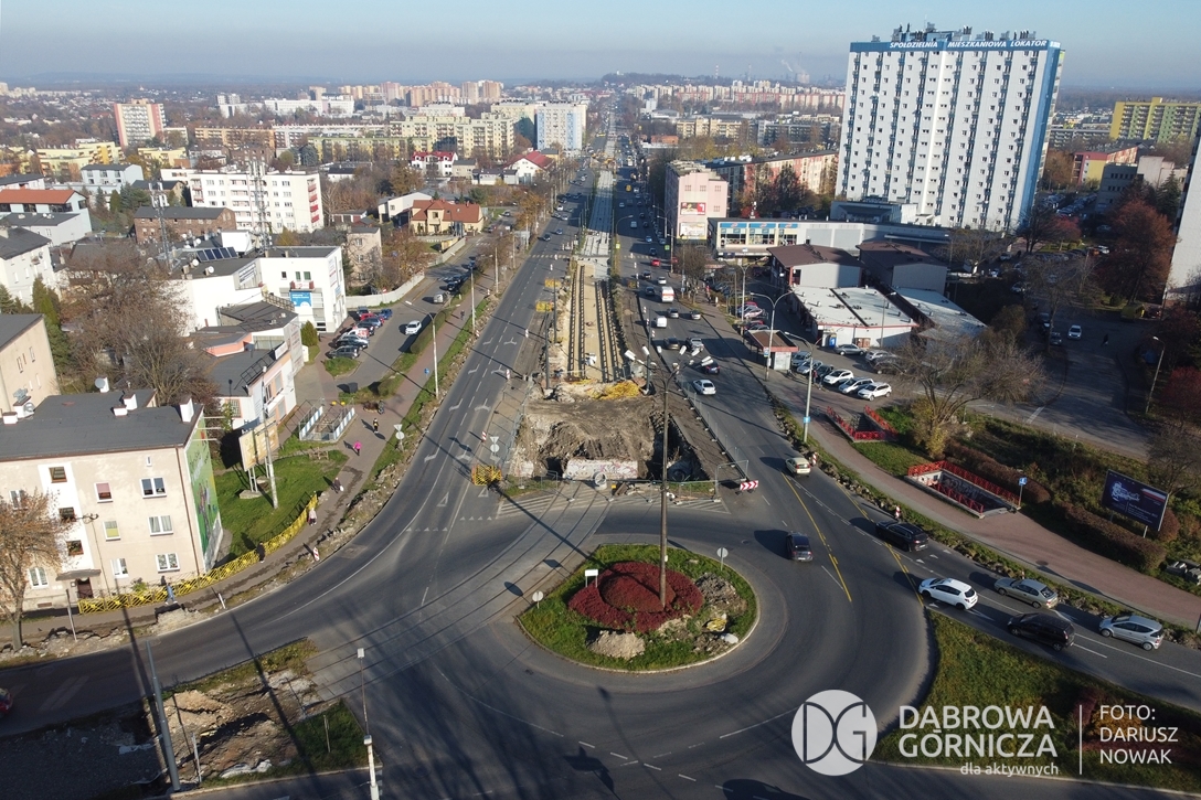 2022.11.14 DG – Centrum / Reden / Gołonóg. Prace przy modernizacji torowiska tramwajowego w głównym ciągu dąbrowskich ulic. FOTO: Dariusz Nowak (nddg)