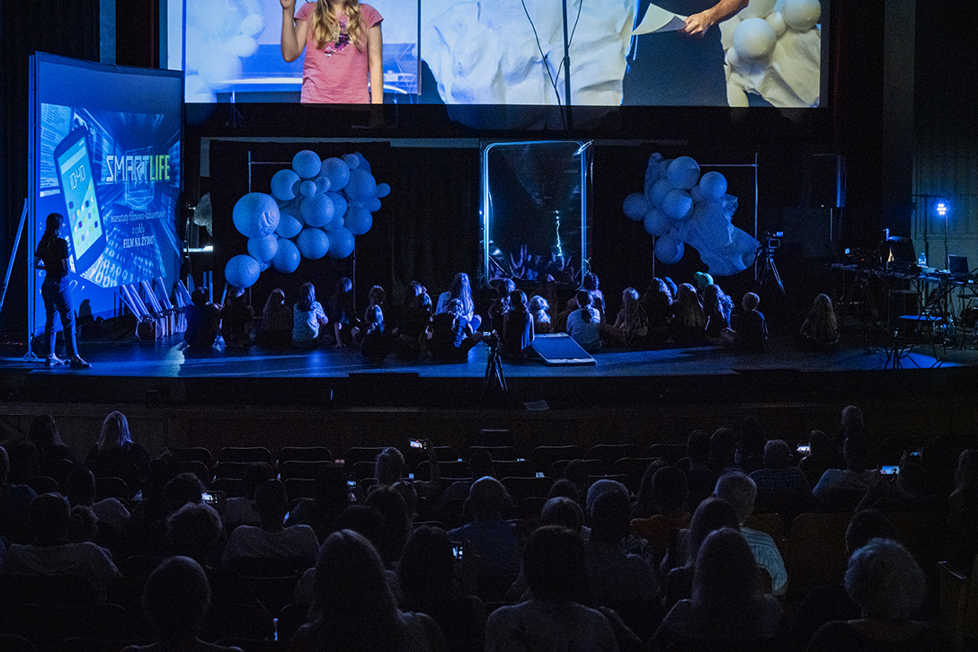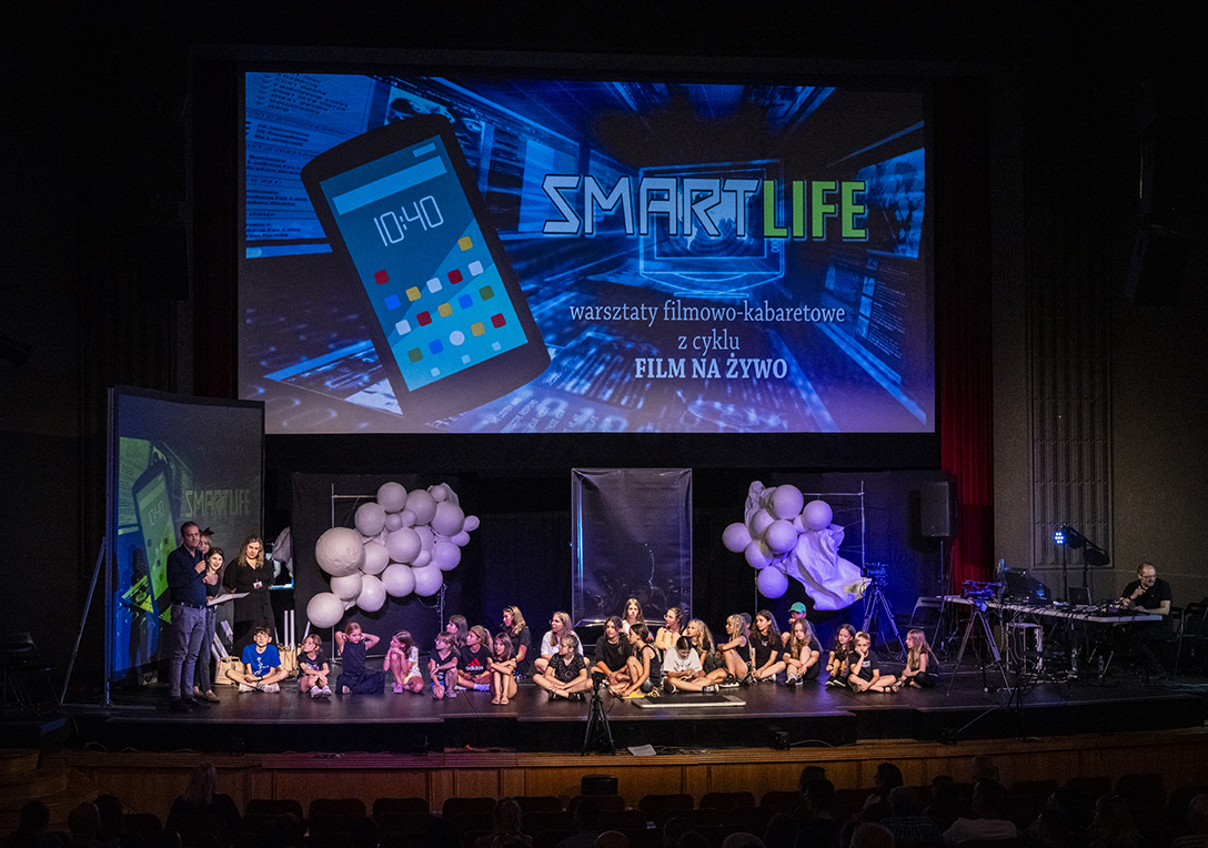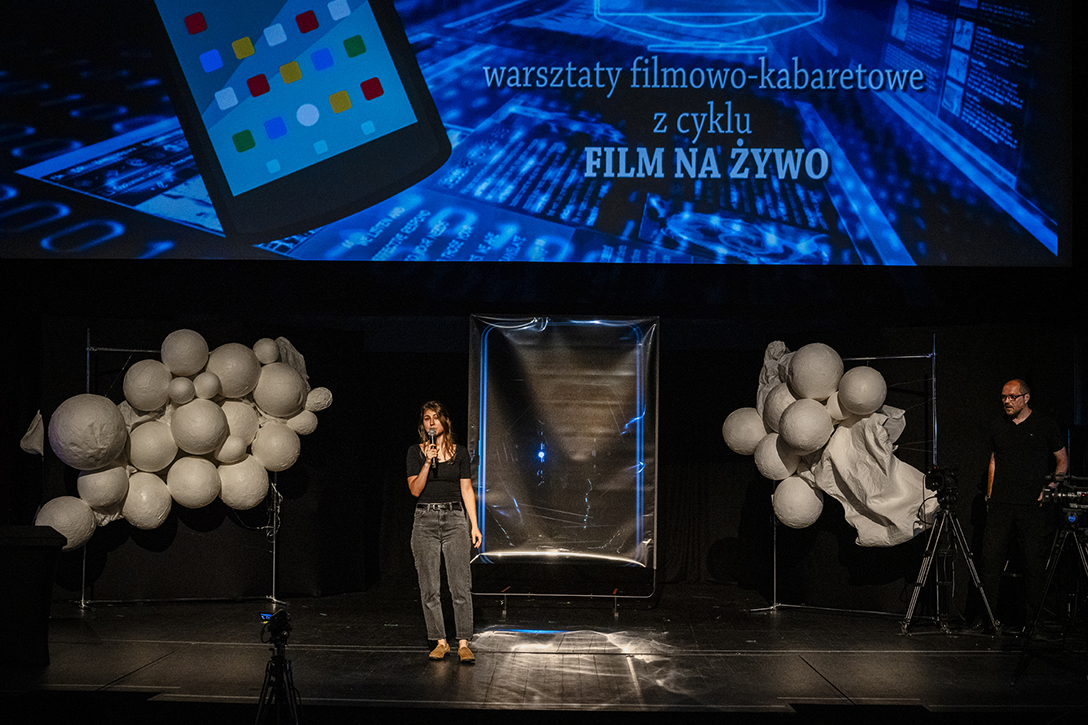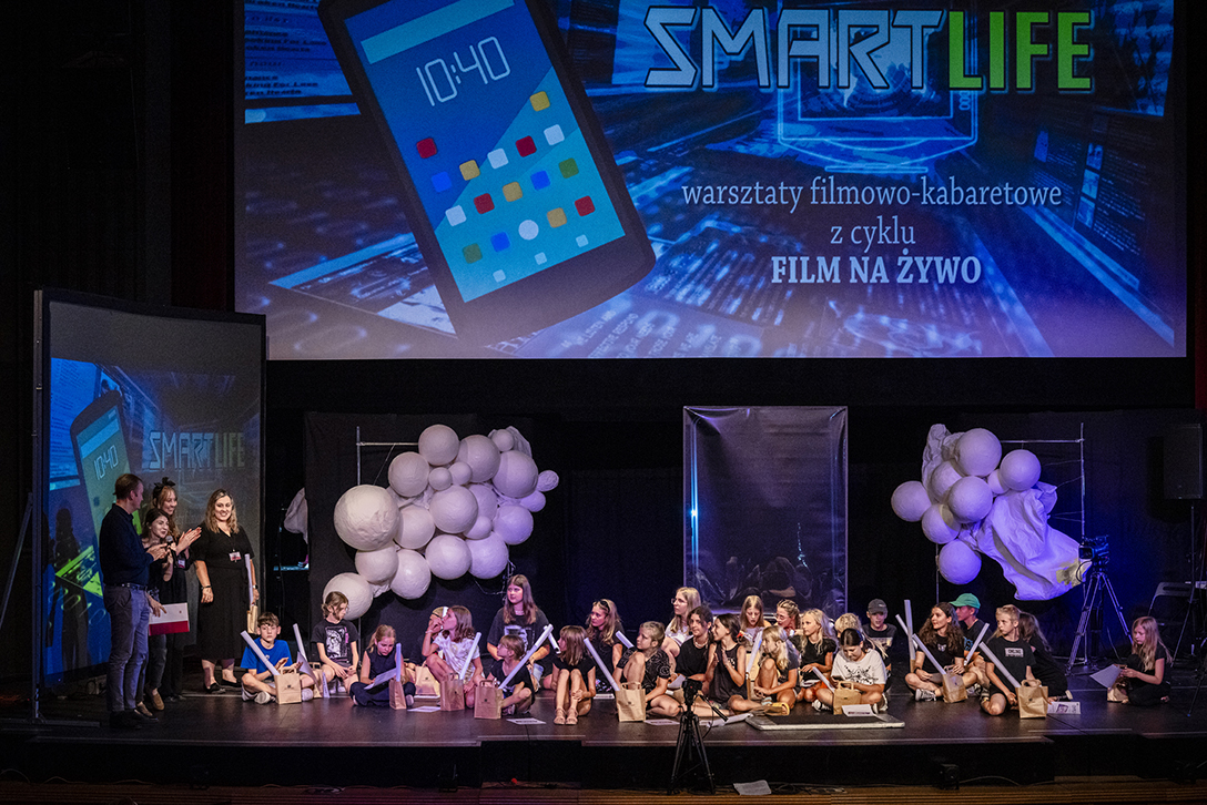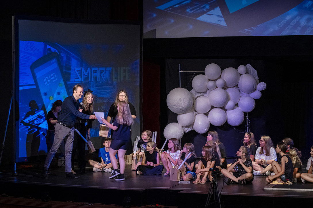 19.07.2024 r. – Smart Life – warsztaty filmowe o wpływie telefonów, internetu i mediów społecznościowych na kondycję psychofizyczną człowieka, prowadzone przez Jarosława Cybę w formule „filmu na żywo” . Fot.: M. Wesołowski