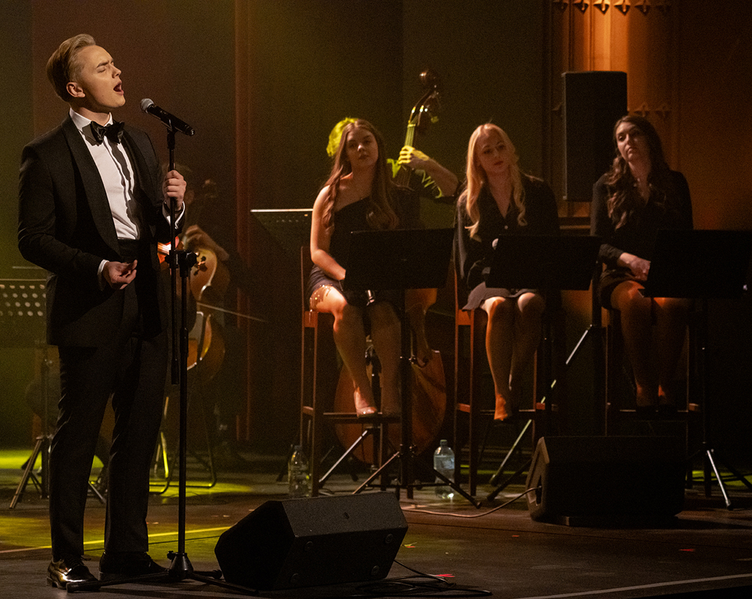 22.03.2024 – pełen wspomnień i nastroju koncert w wykonaniu Antoniego Zimnala i Orkiestry Maxime, poświęcony znakomitemu artyście – Zbigniewowi Wodeckiemu, który kilka razy stawał na scenie Pałacu Kultury Zagłębia. Fot.: M.Wesołowski