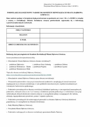 Formularz zgłoszeniowy – załączniki do Zarządzenia nr 1161.2025 Prezydenta Miasta DG z dnia 2.10.2025 r.